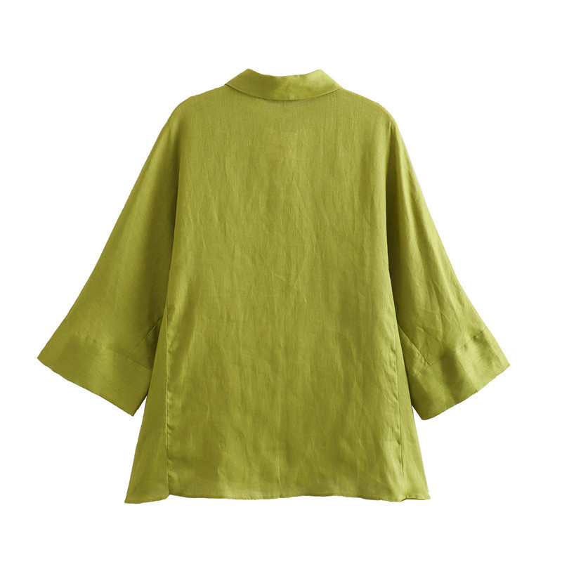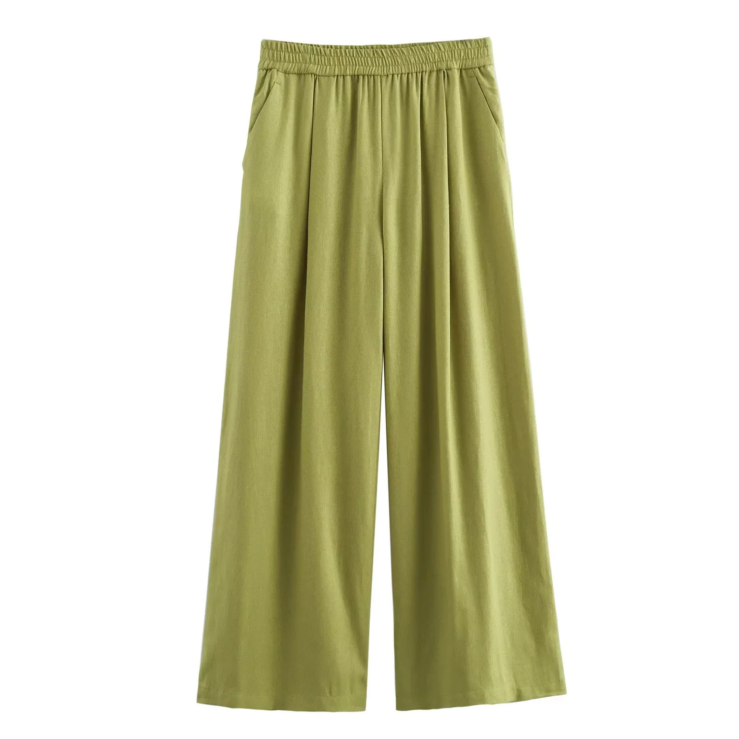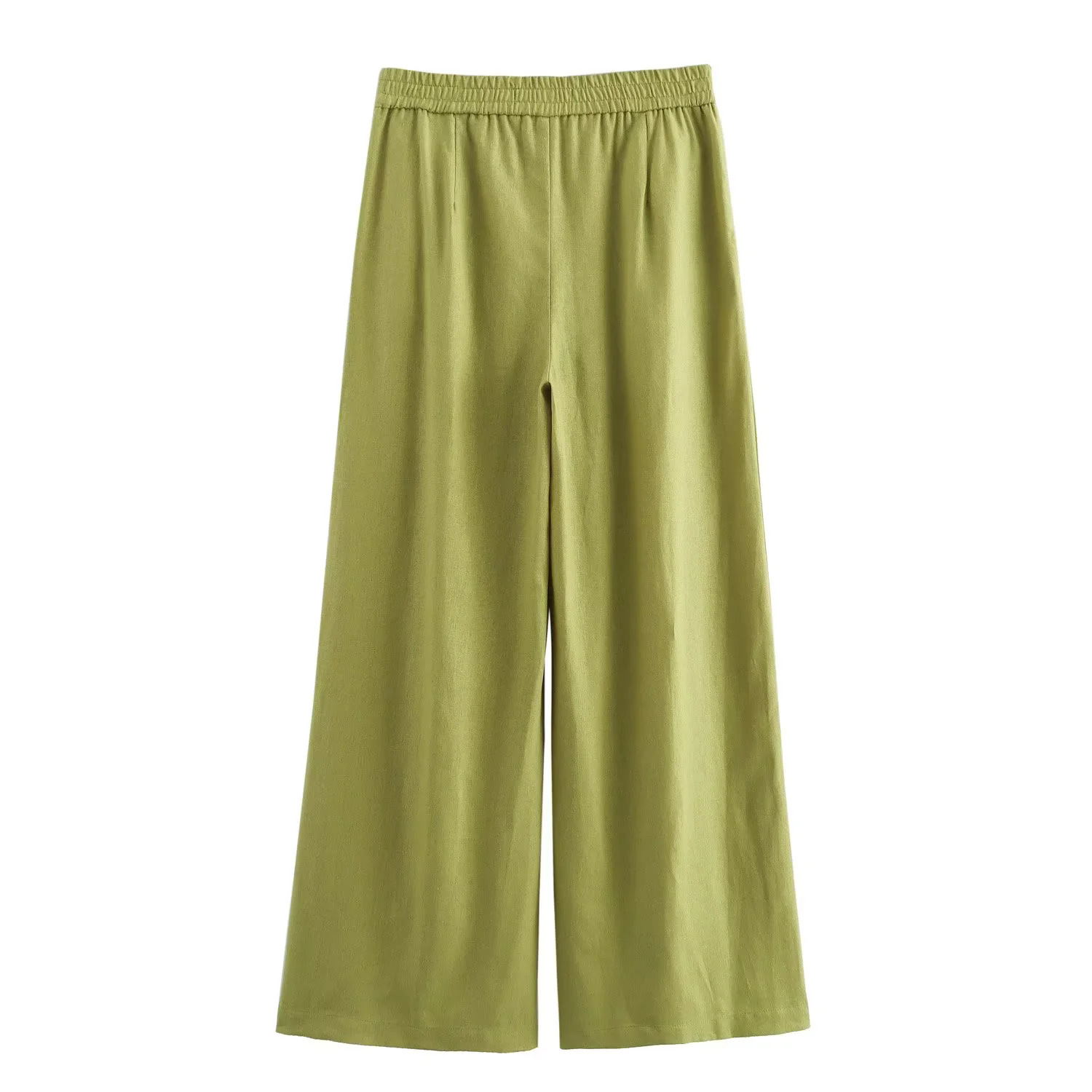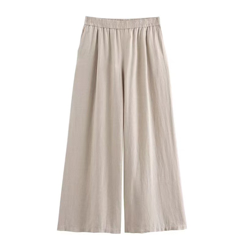국경을 넘는 유럽과 미국 여성의 AliExpress INS 폭발 느슨한 린넨 셔츠 탄성 스트레이트 바지 세트 2157045