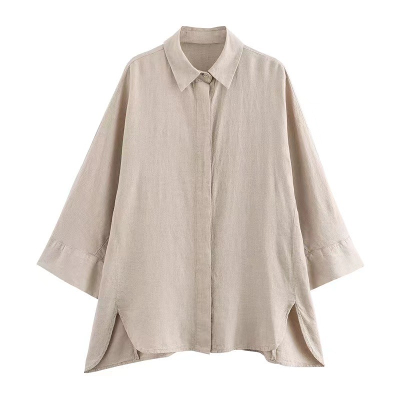 국경을 넘는 유럽과 미국 여성의 AliExpress INS 폭발 느슨한 린넨 셔츠 탄성 스트레이트 바지 세트 2157045스토어 가기
