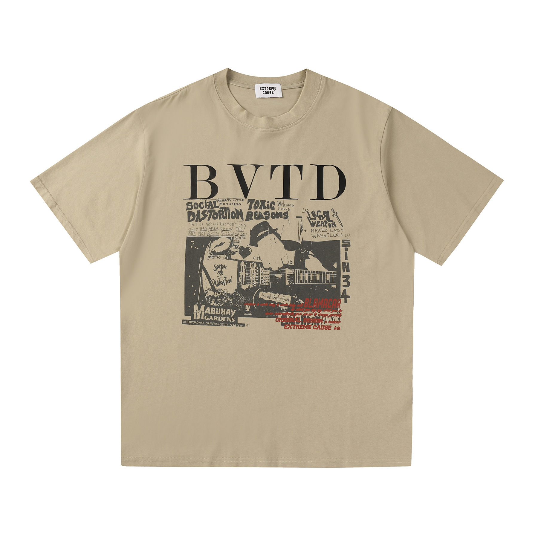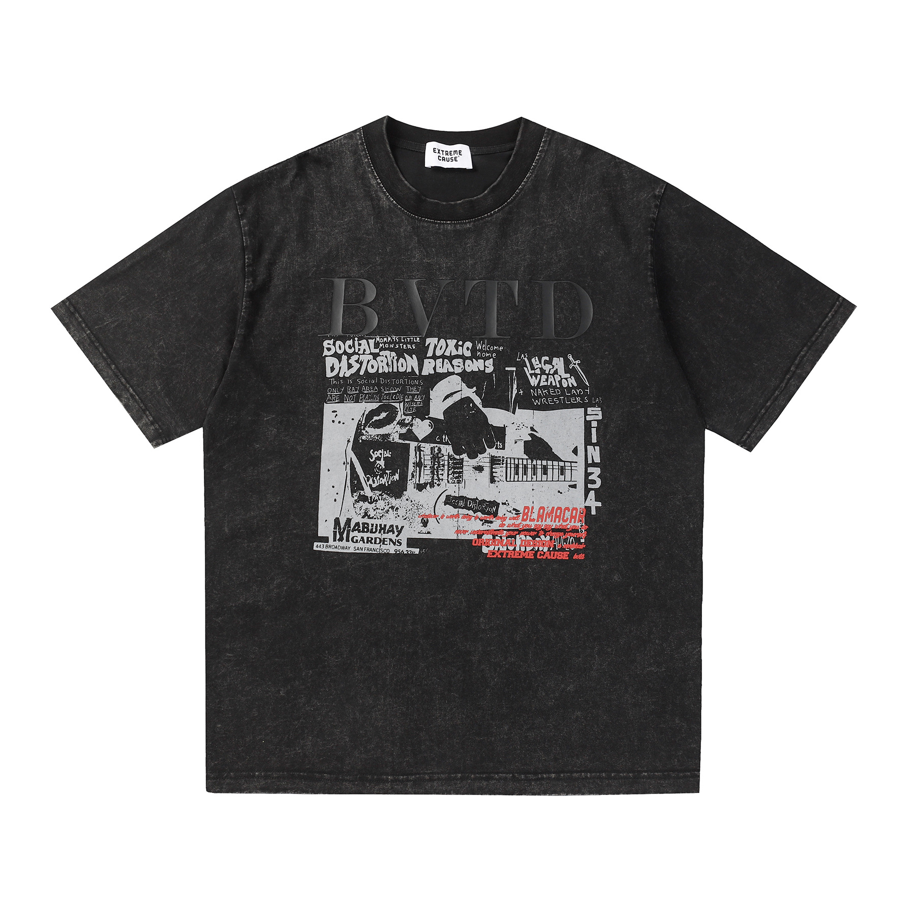 아메리칸 스타일 레트로 기타 신문 스타일 프린트 반팔 티셔츠 남녀 인스타그램 인기 브랜드 힙합 루즈 커플 반소매 탑