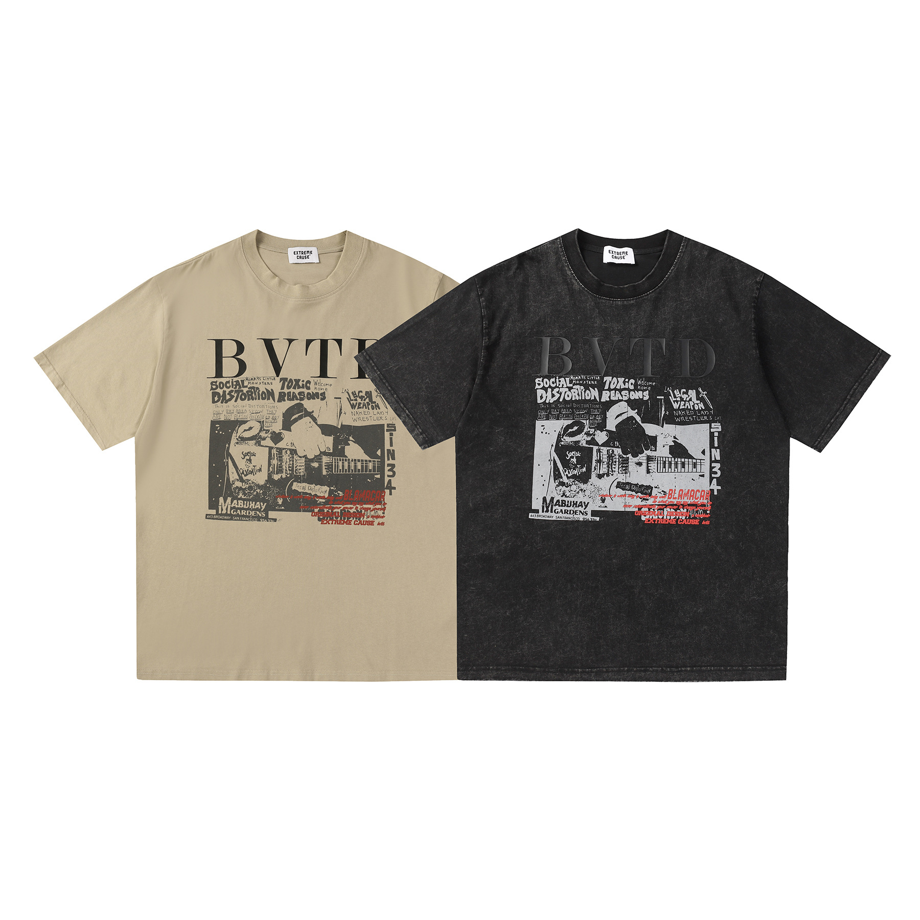 아메리칸 스타일 레트로 기타 신문 스타일 프린트 반팔 티셔츠 남녀 인스타그램 인기 브랜드 힙합 루즈 커플 반소매 탑스토어 가기
