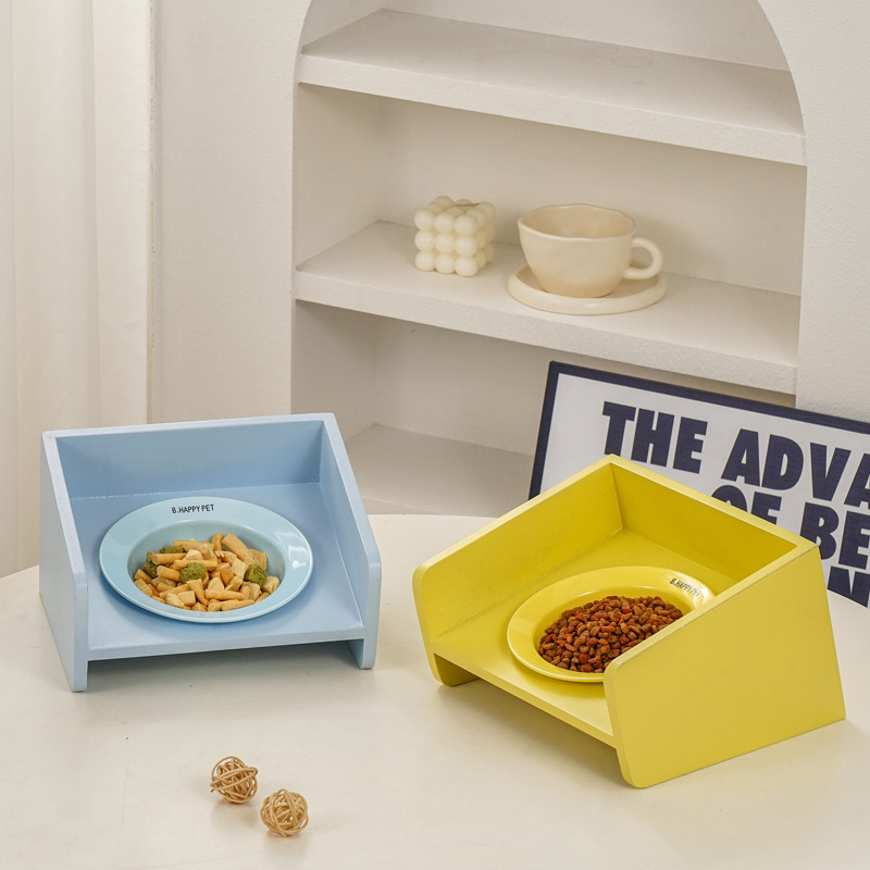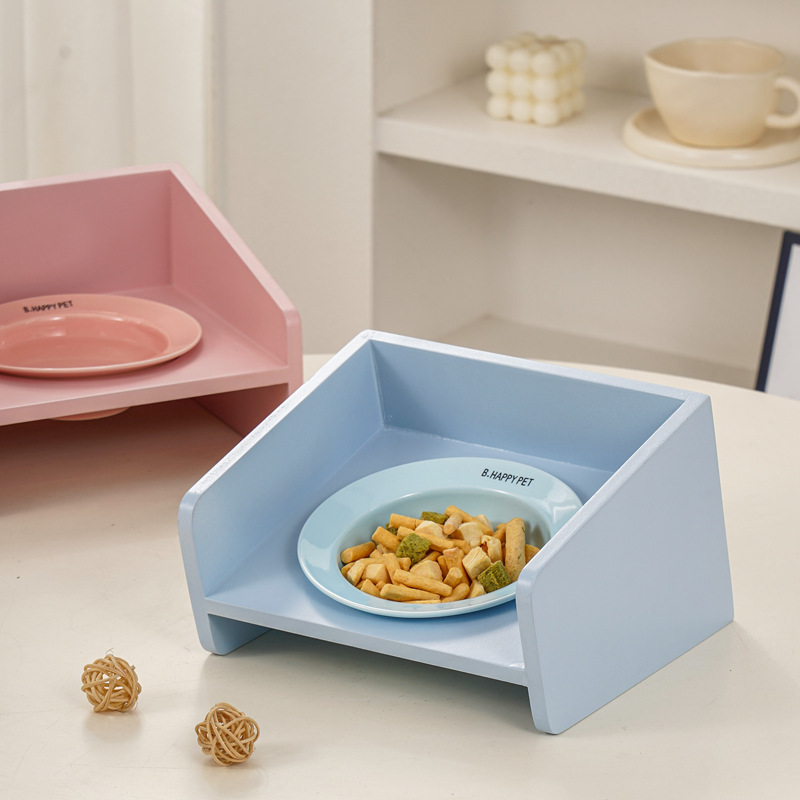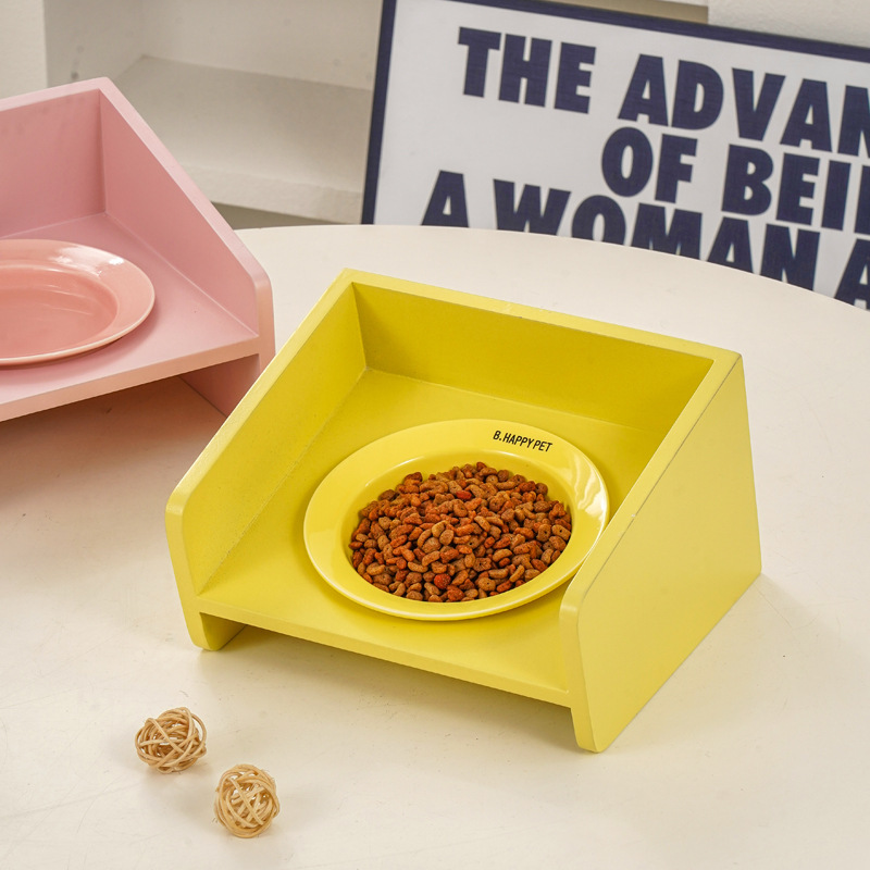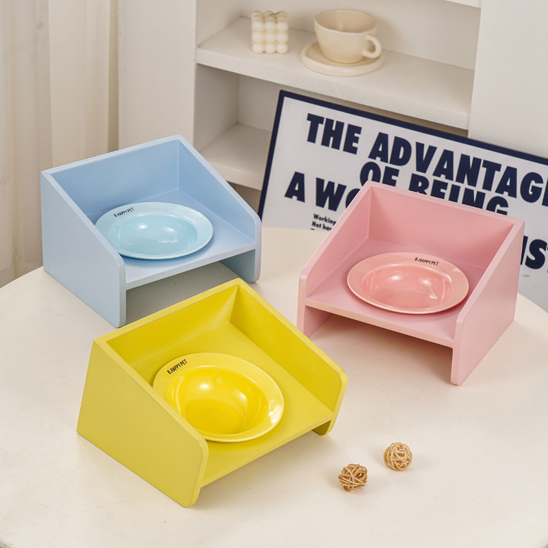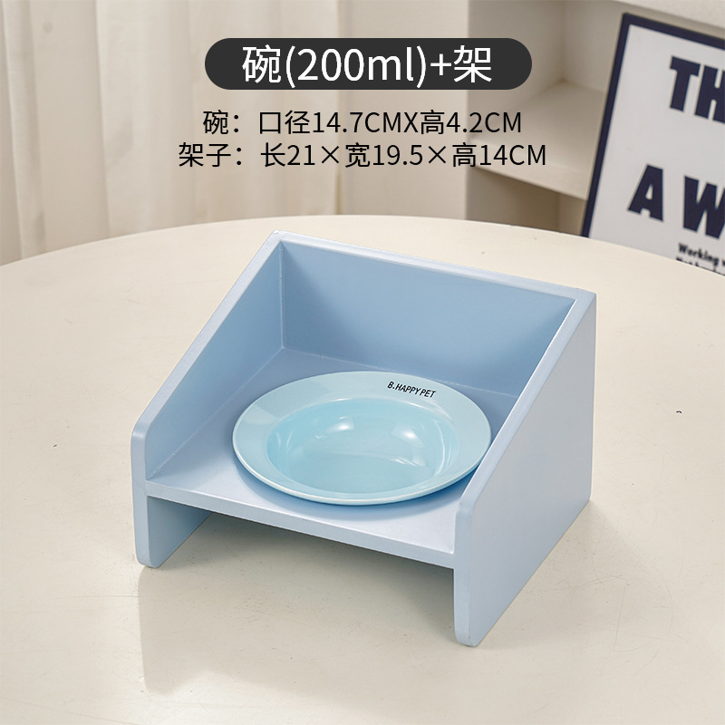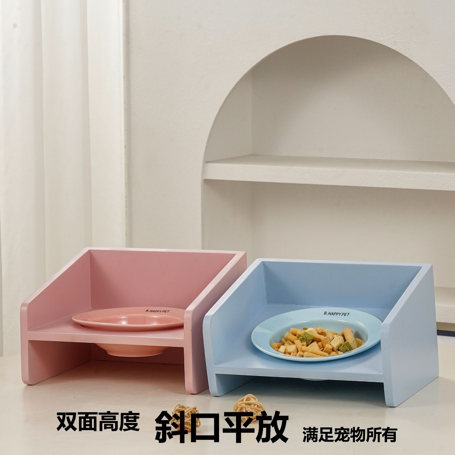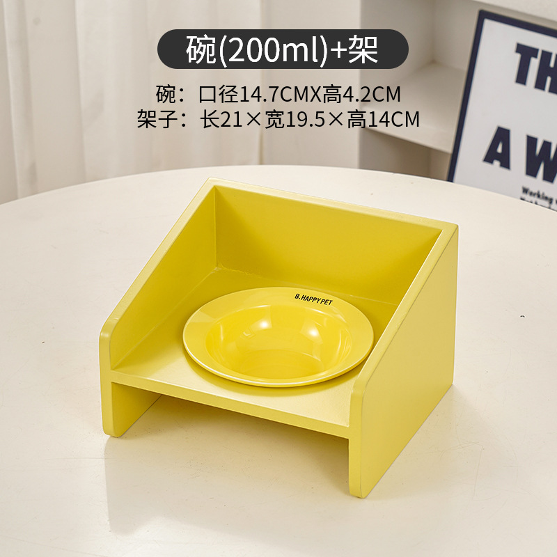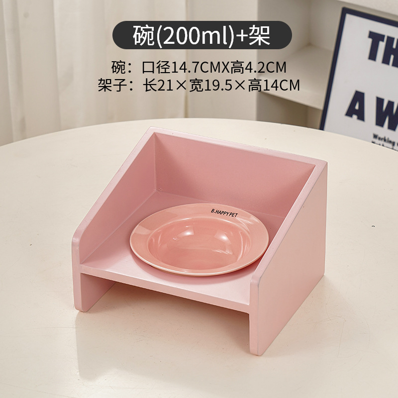 UFO 그릇 랙 고양이 그릇 세라믹 높은 랙 다이앵글 입 고양이 음식 분지 목 보호 마시는 그릇 애완 동물 그릇 개 그릇 나무 랙