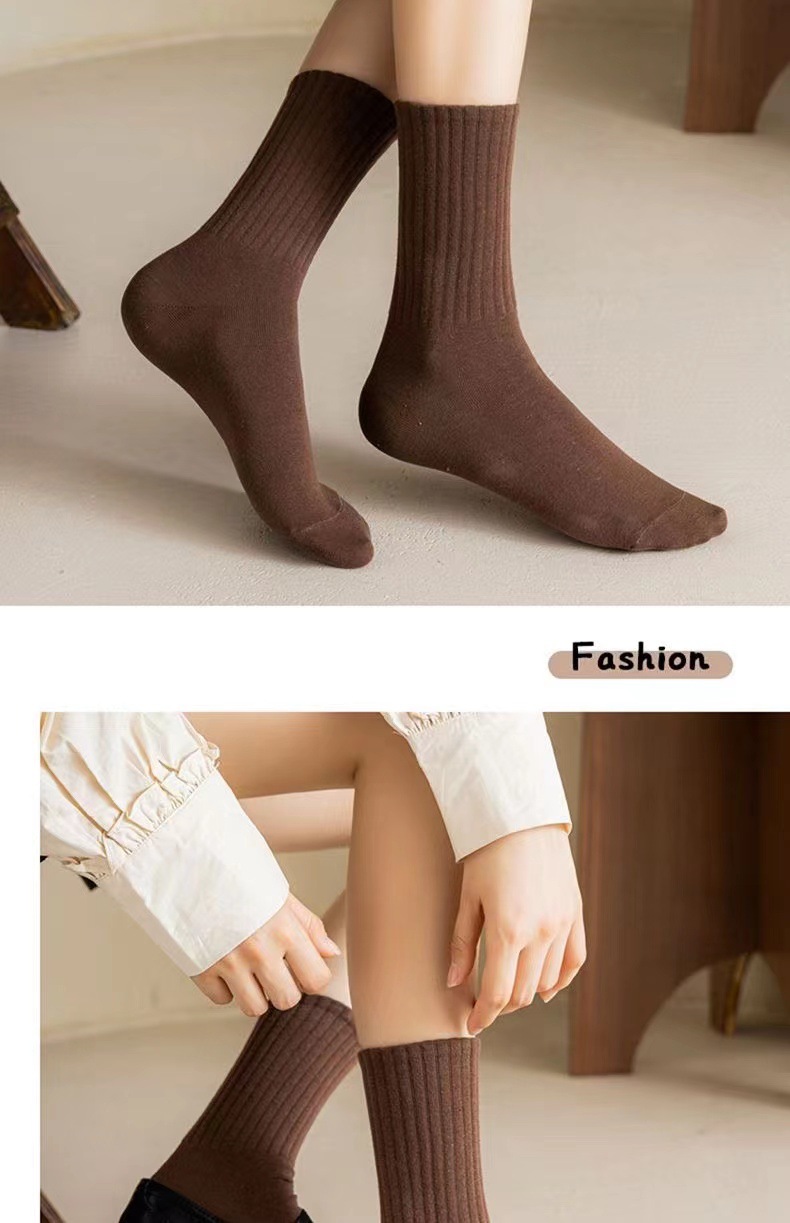 [원피스 배송] Dui Dui 양말 여성용 종아리 중반 양말 단색 세로 줄무늬 얇은 스포츠 스타일 통기성 스타킹 봄 여름