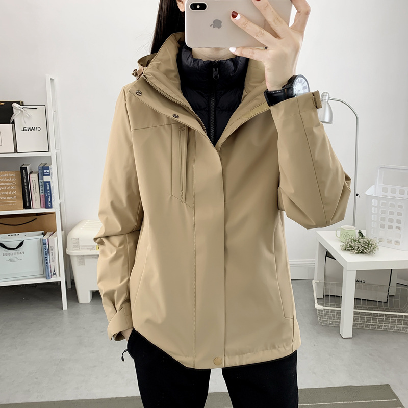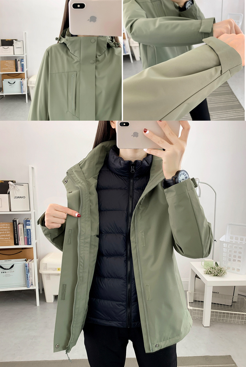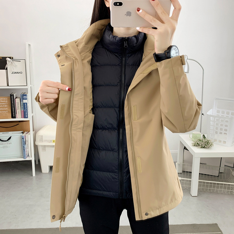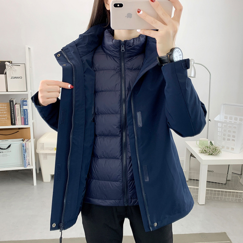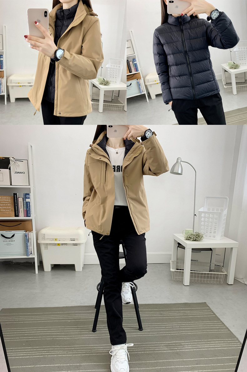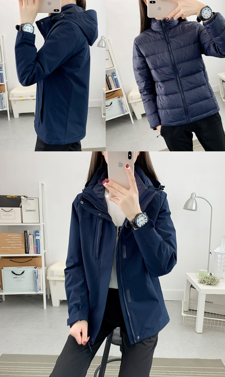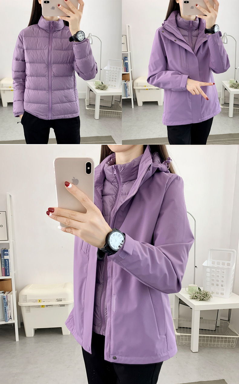 등산 자켓, 카라가 있는 산악 스타일 윈드브레이커, 남녀공용 3-in-1 화이트 덕다운 이너 라이너, 경량 보온 자켓스토어 가기