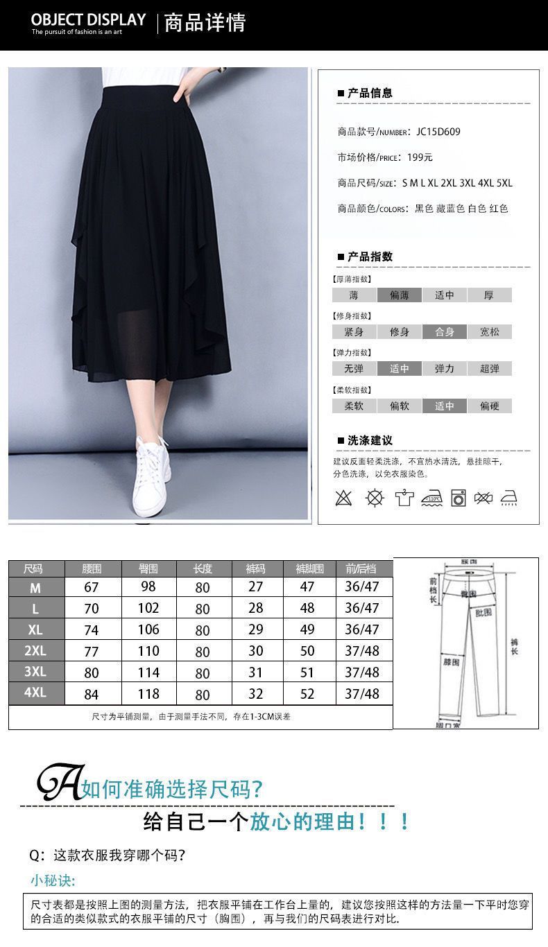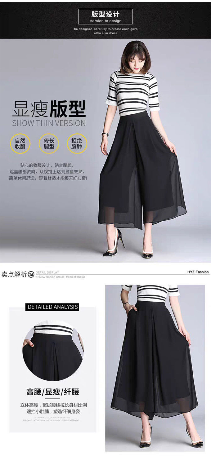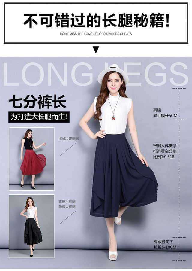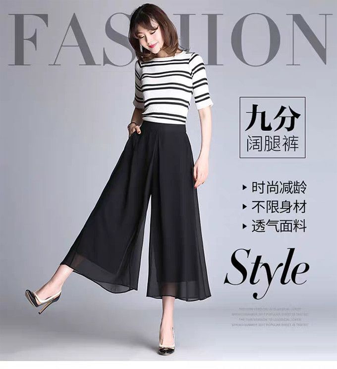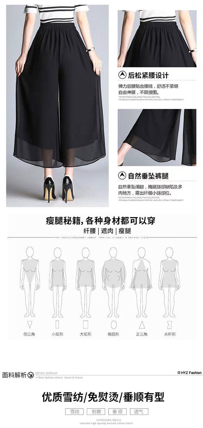 쉬폰 바지 치마 통기성 얇은 여름과 가을 넓은 다리 바지 카프리 바지 플러스 사이즈 한국식 하이 허리 느슨한 캐주얼 바지 여성 레이 레드스토어 가기