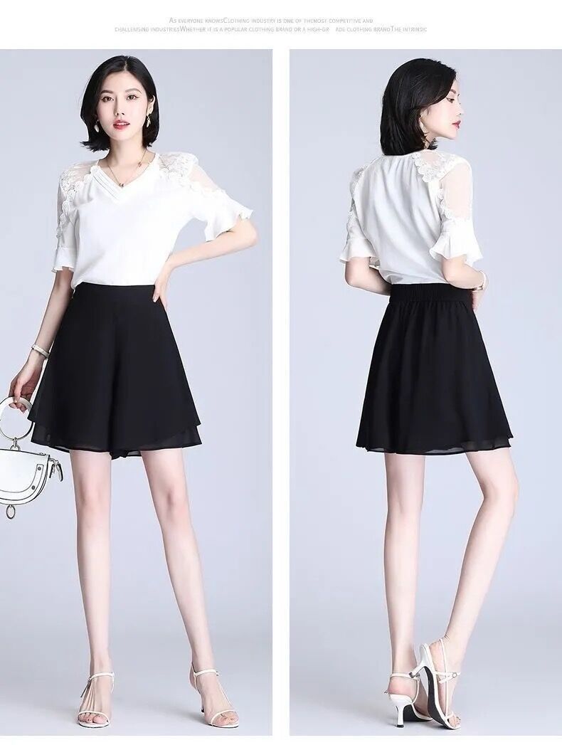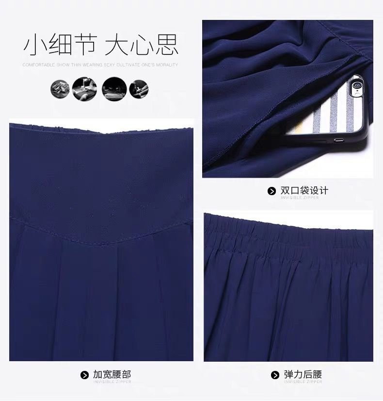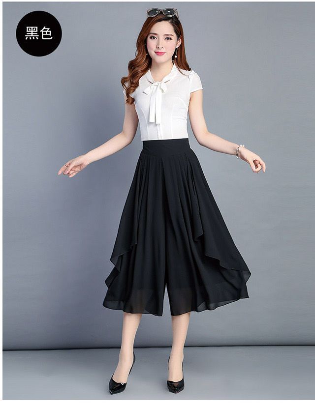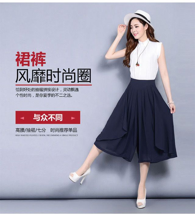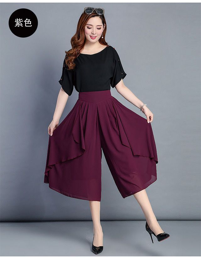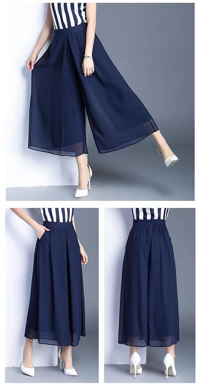 쉬폰 바지 치마 통기성 얇은 여름과 가을 넓은 다리 바지 카프리 바지 플러스 사이즈 한국식 하이 허리 느슨한 캐주얼 바지 여성 레이 레드스토어 가기