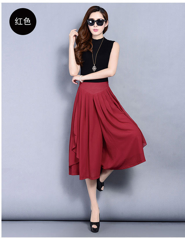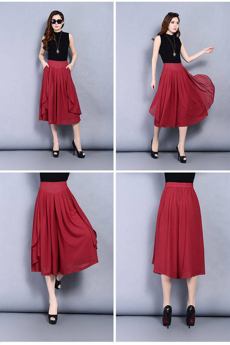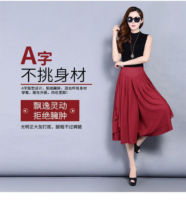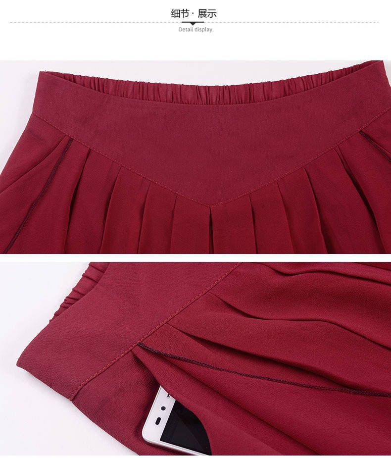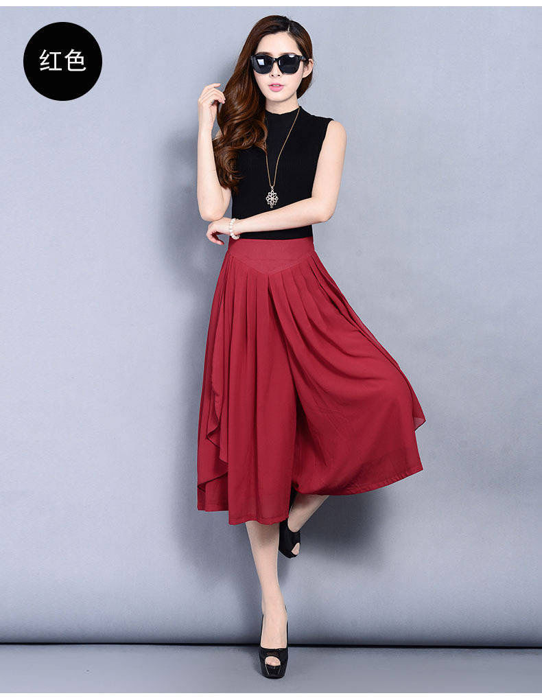 쉬폰 바지 치마 통기성 얇은 여름과 가을 넓은 다리 바지 카프리 바지 플러스 사이즈 한국식 하이 허리 느슨한 캐주얼 바지 여성 레이 레드