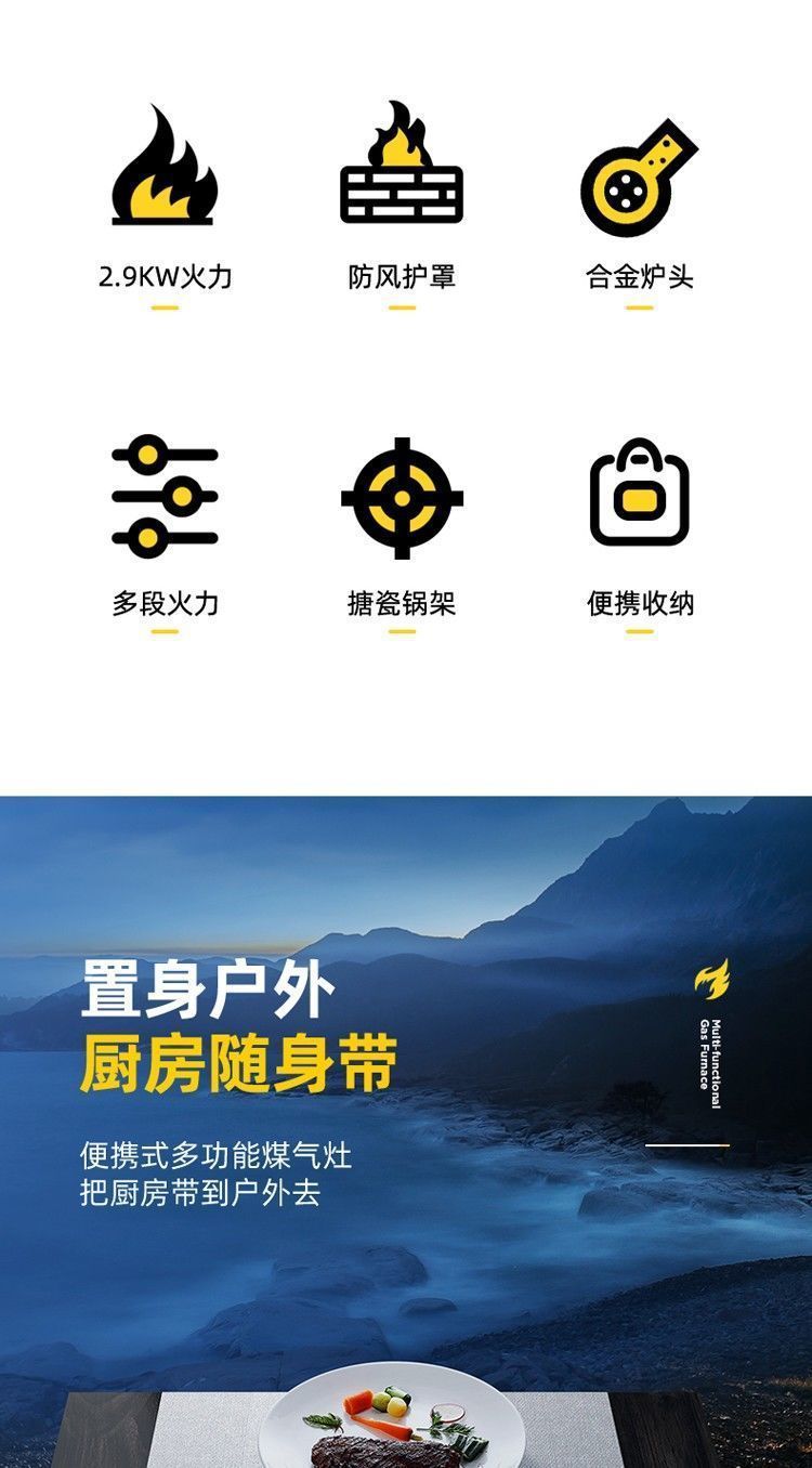 • 단일 난로 + 여행 가방 + 방풍 링 + 가스 4병 + 원양 냄비⚑