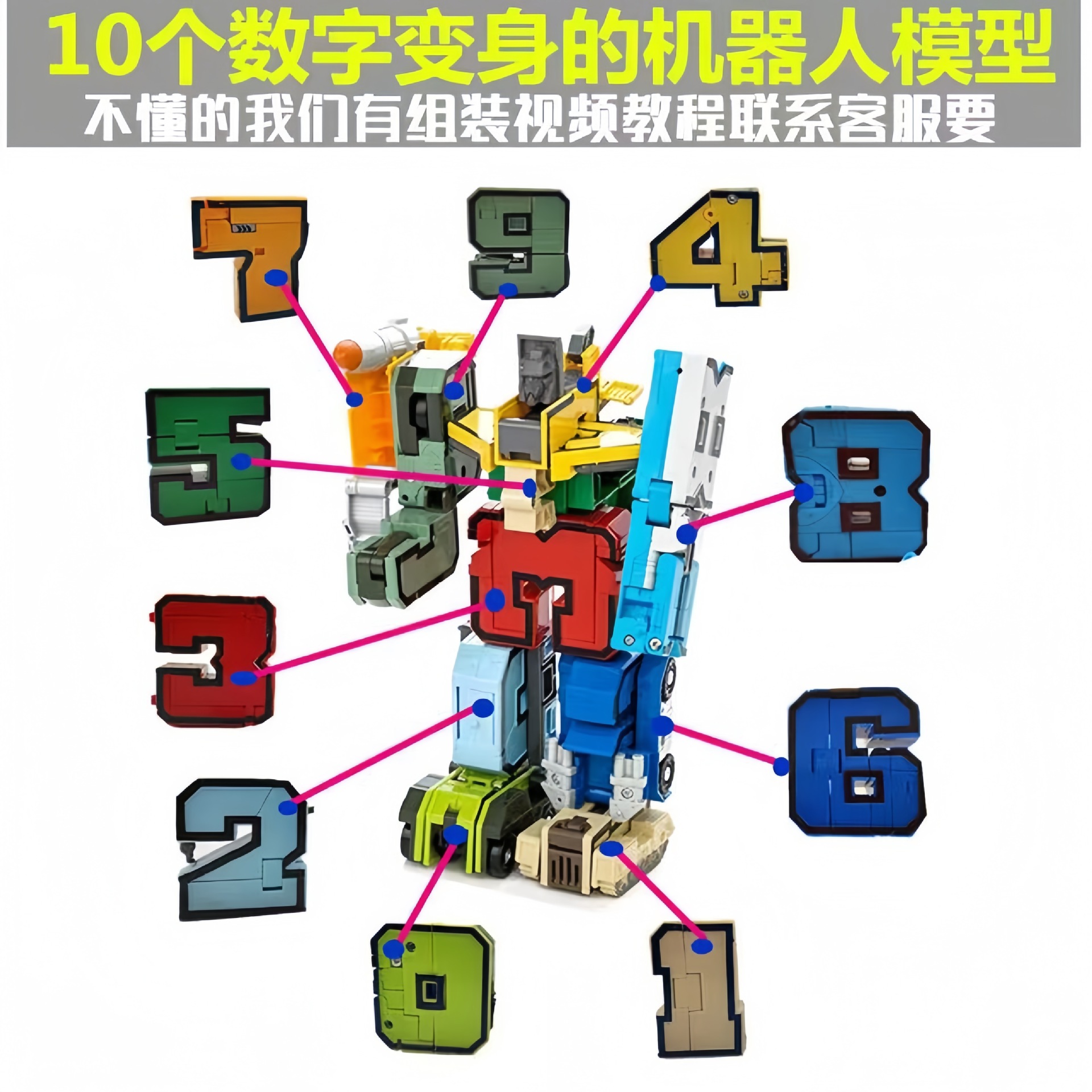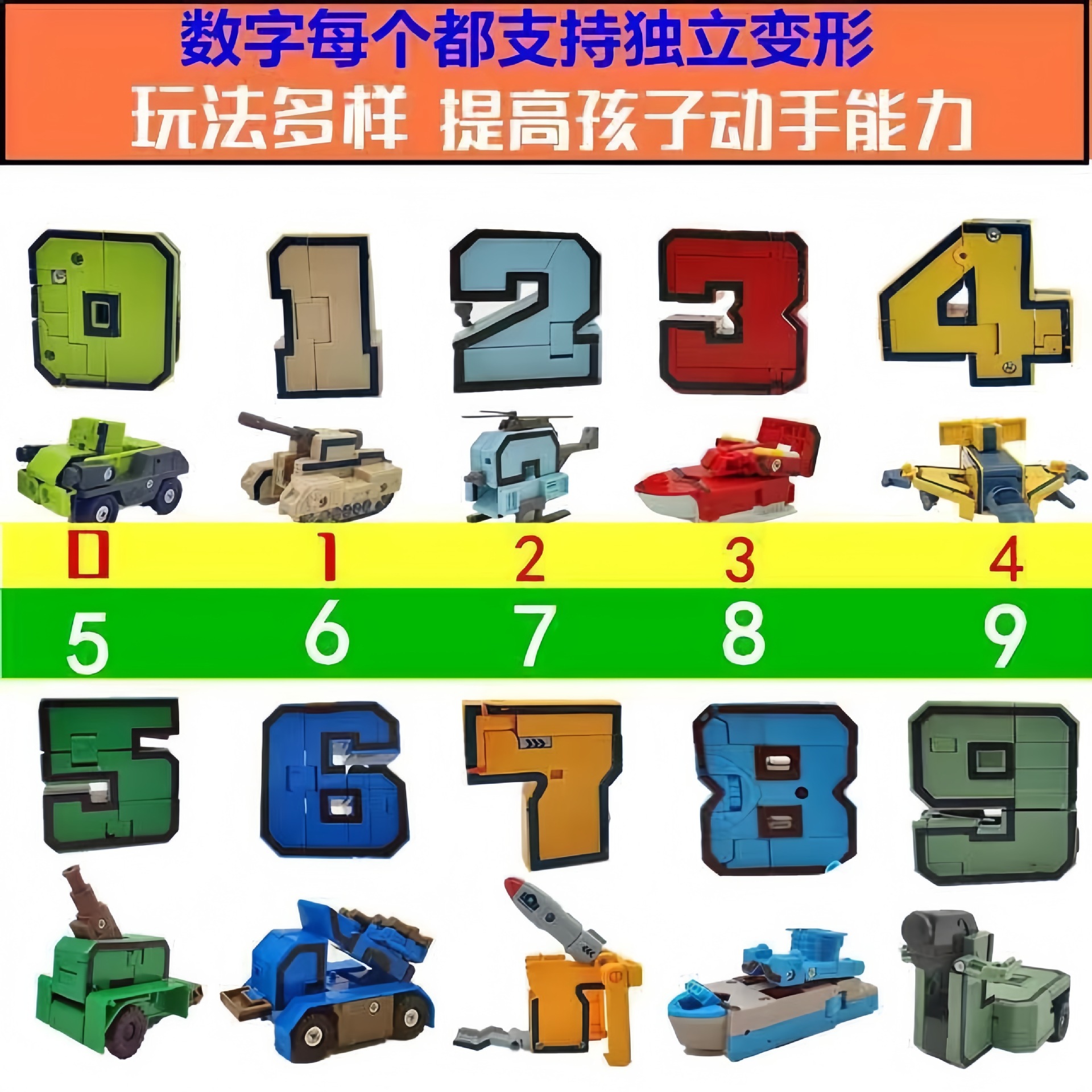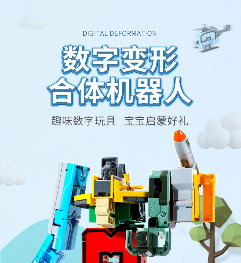 어린이 디지털 로봇 변형 조용한 소년 퍼즐 조립 디지털 변형 빌딩 블록 도매 오토봇 편지스토어 가기