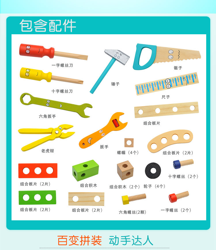 어린이 시뮬레이션 놀이터 만화 나무 휴대용 유지 보수 도구 상자 조립 및 분해 너트 조합 교육 장난감스토어 가기
