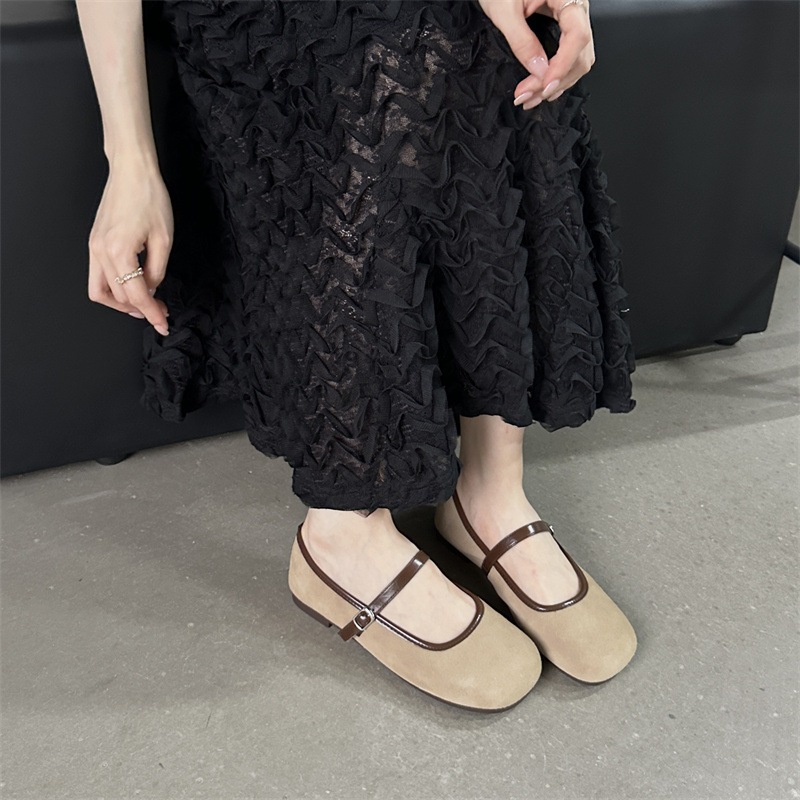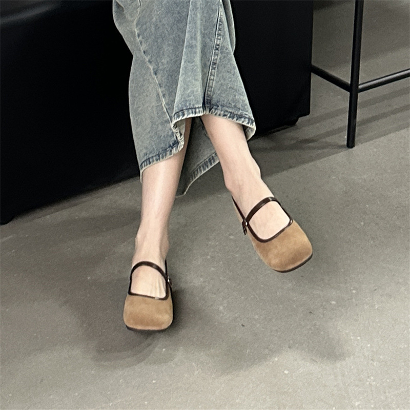 나비 O 신발 여성 메리 제인 신발 여성용 둥근 발가락 버클 얕은 입 부드러운 가죽 신발 2024 여름