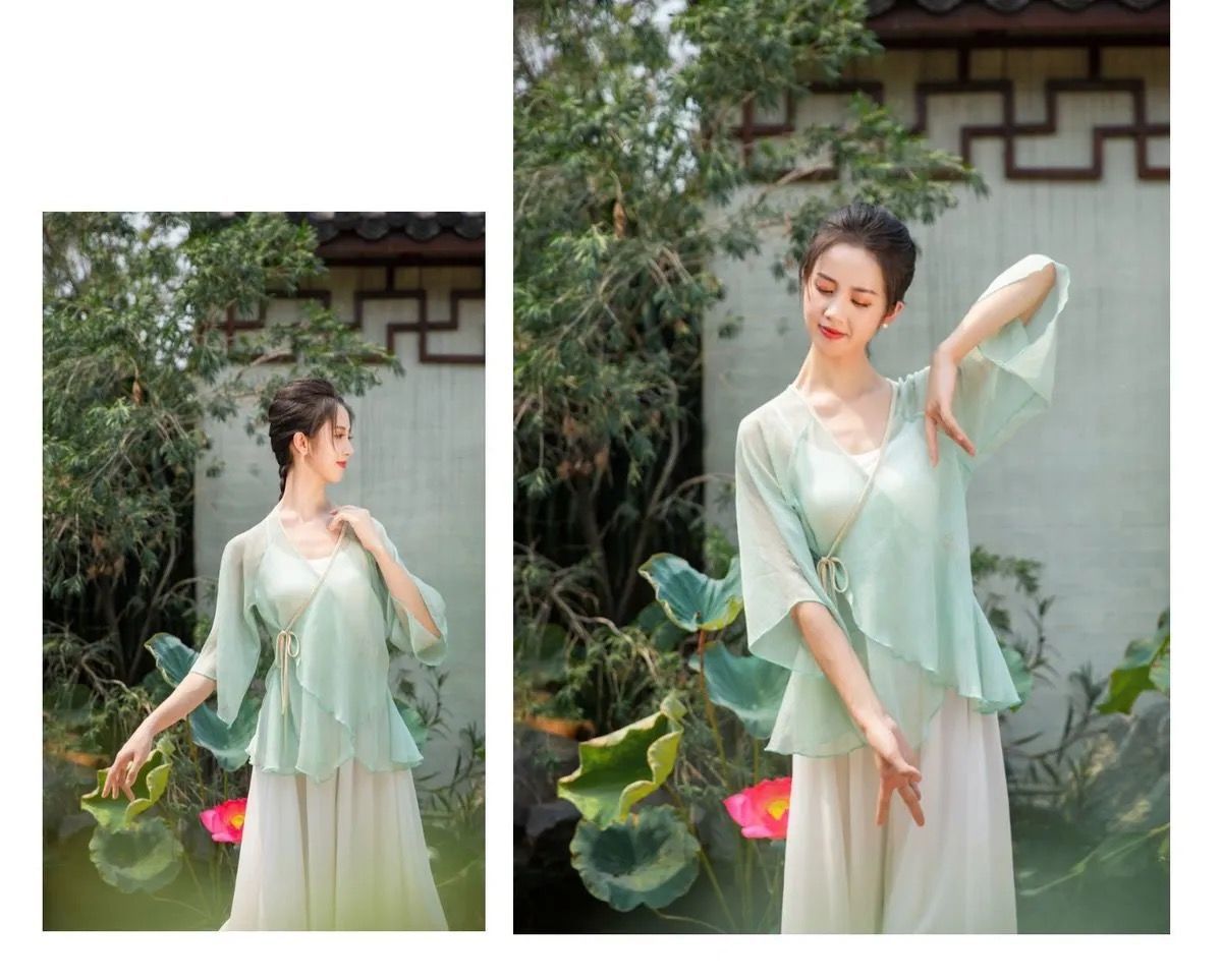 新款古典舞舞韵纱衣舞蹈室衣服套装形体练功服风民族夏女成人磊红