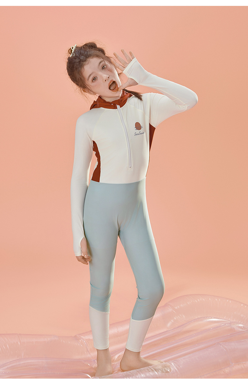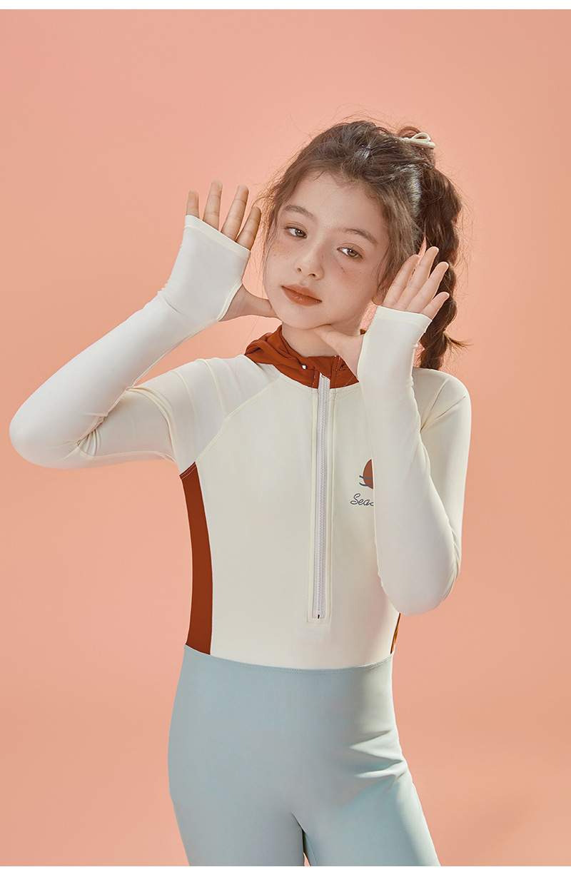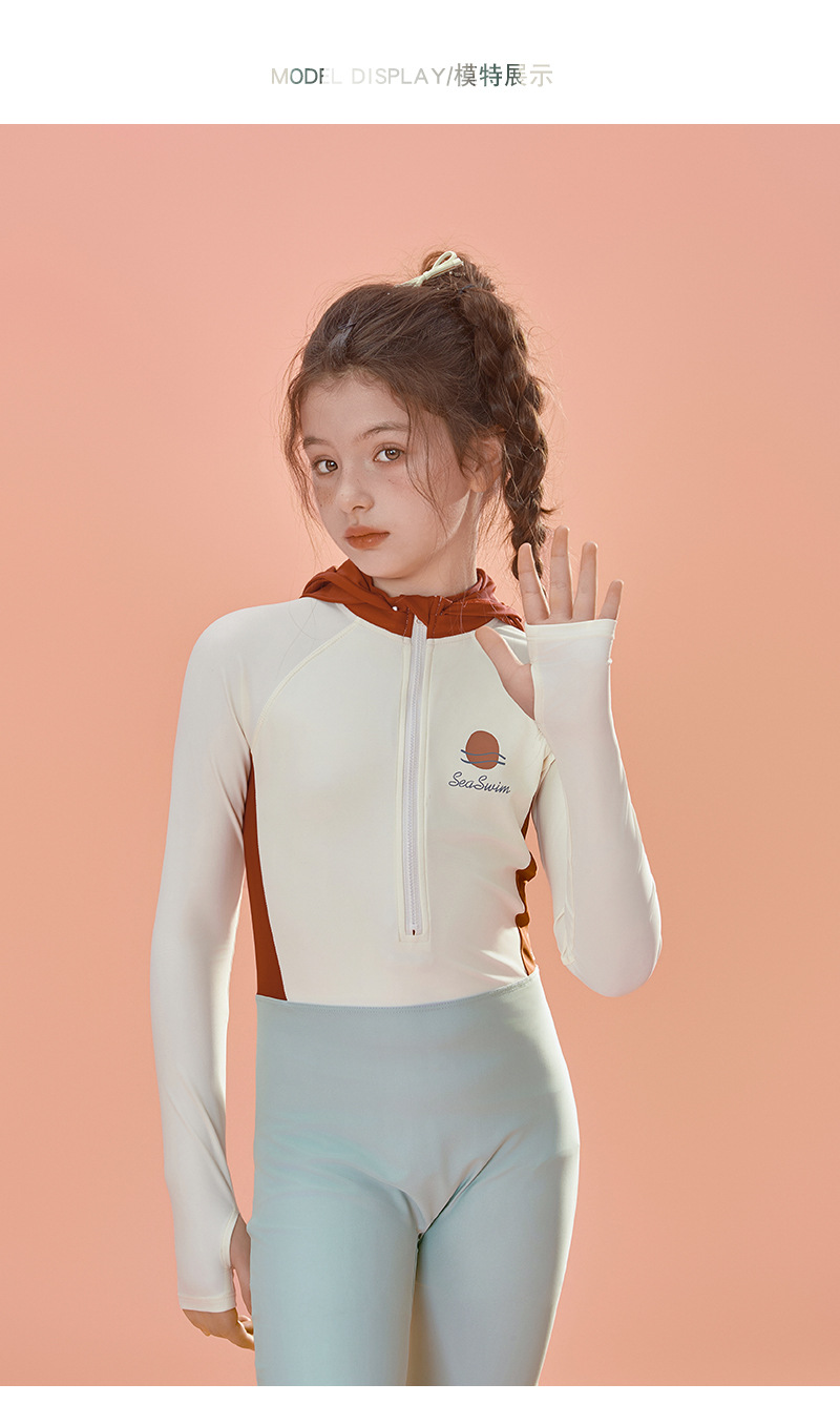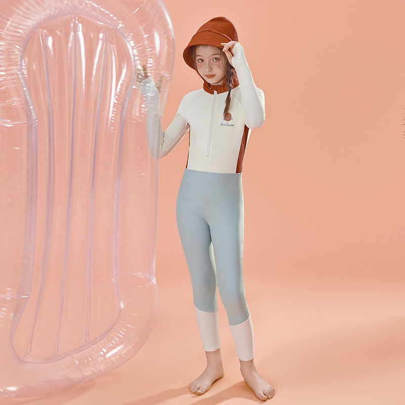 어린 소녀 수영복 24 새로운 레저 스포츠 긴 소매 어린이 모자 자외선 차단제 빠른 건조 도매스토어 가기
