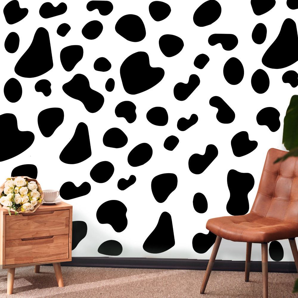 Yiyao DD23147 국경 창조적 인 흑백 소 패턴 벽지 거실 벽 미화 장식 자체 접착 스티커스토어 가기
