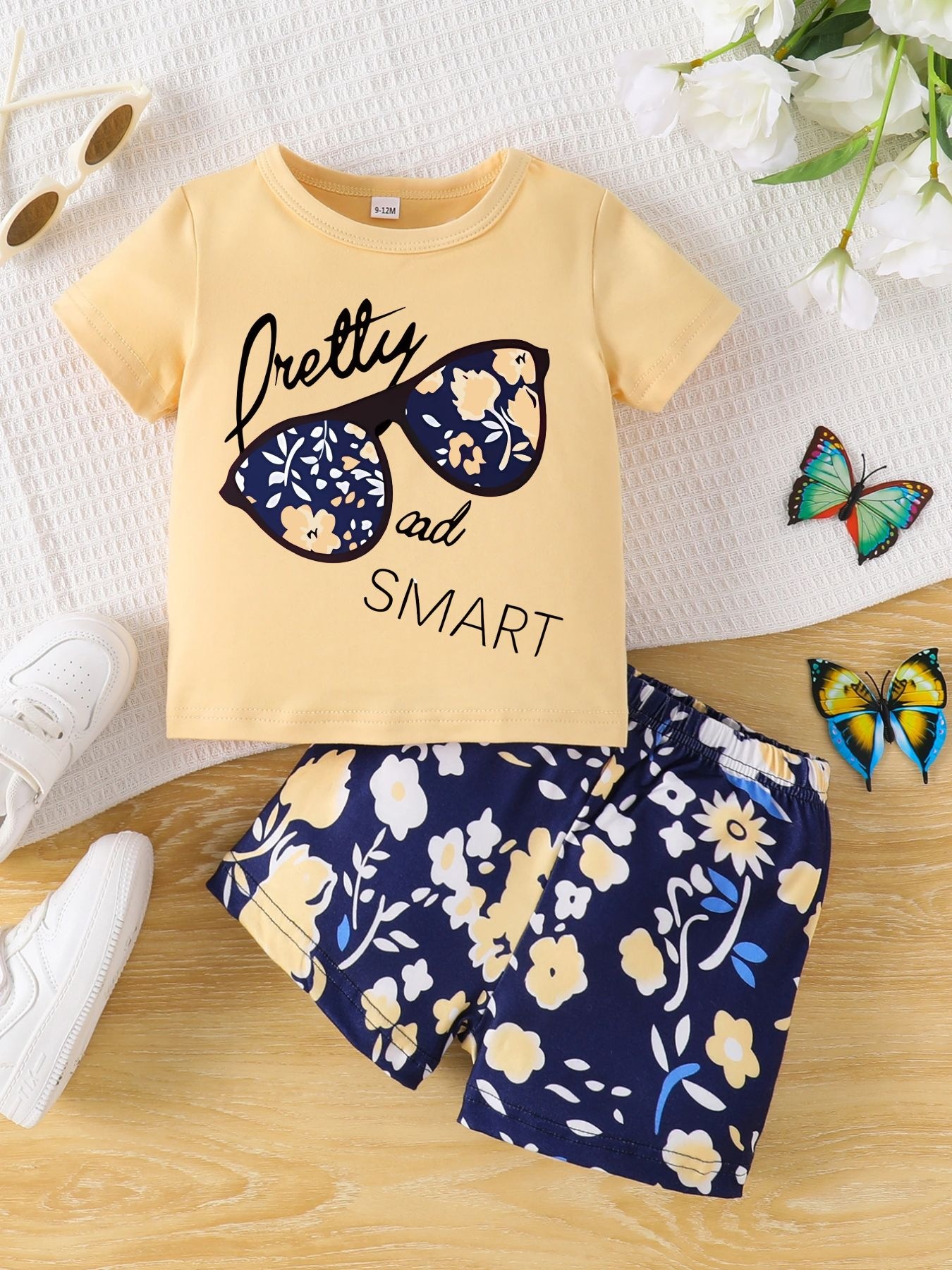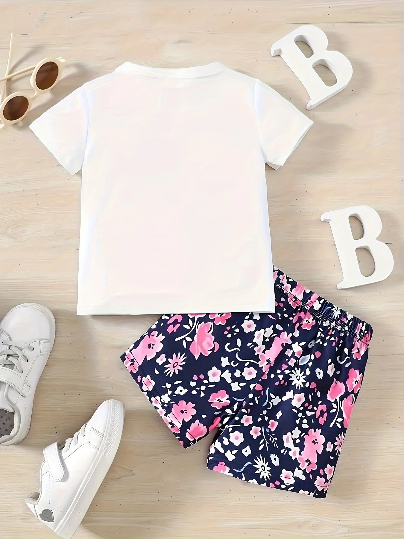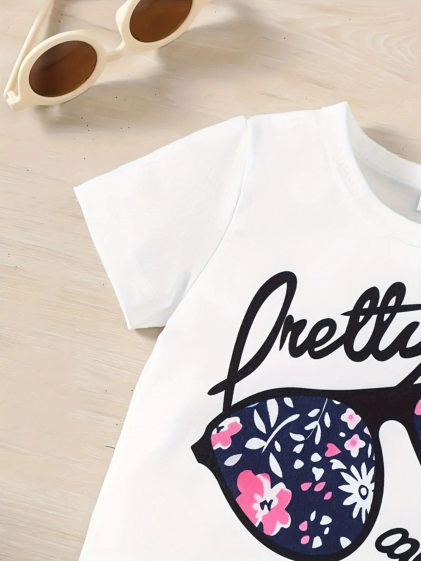 국경 간 INS 아기 소녀 여름 안경 편지 인쇄 반팔 최고 꽃 반바지 세트
