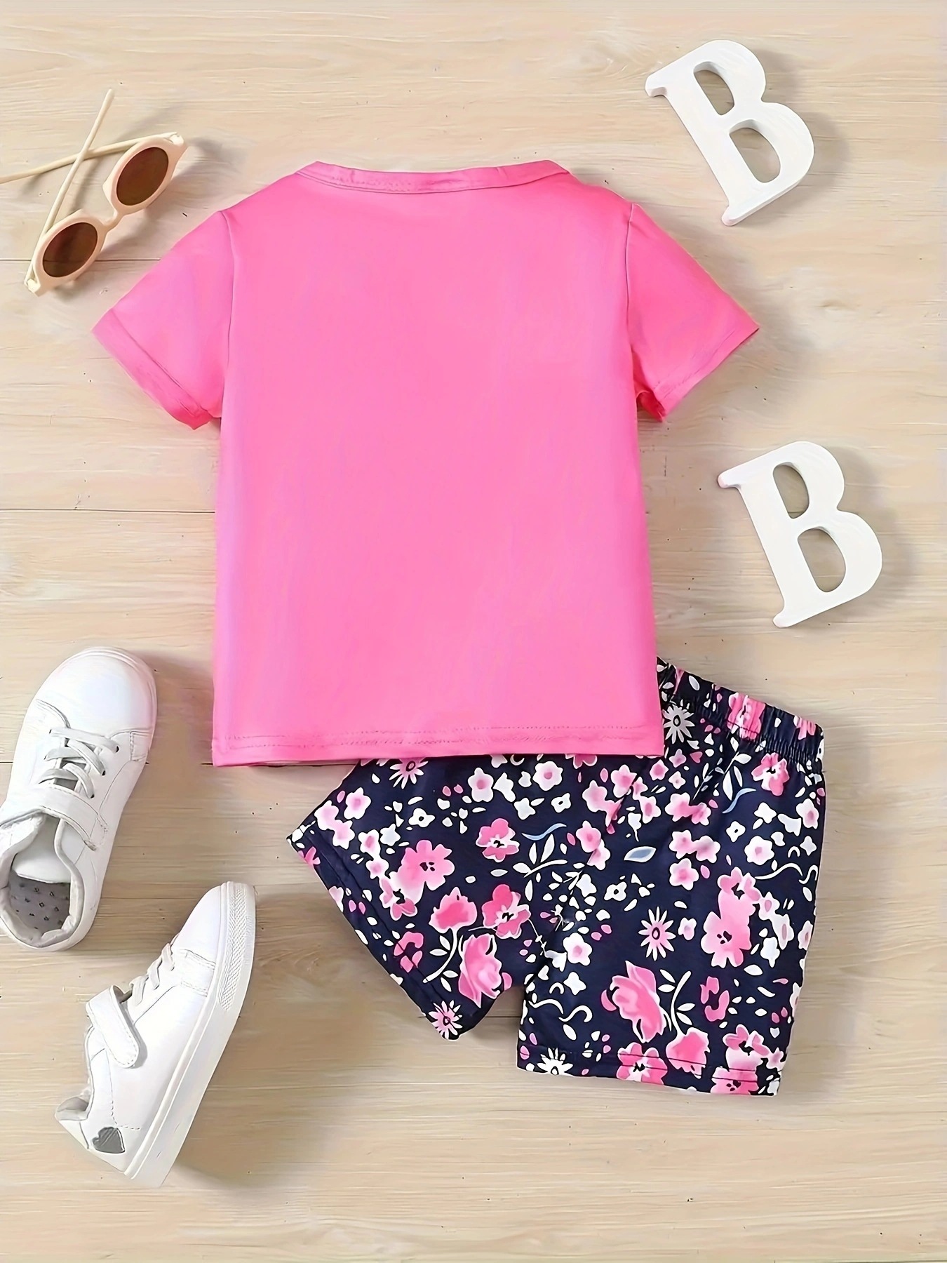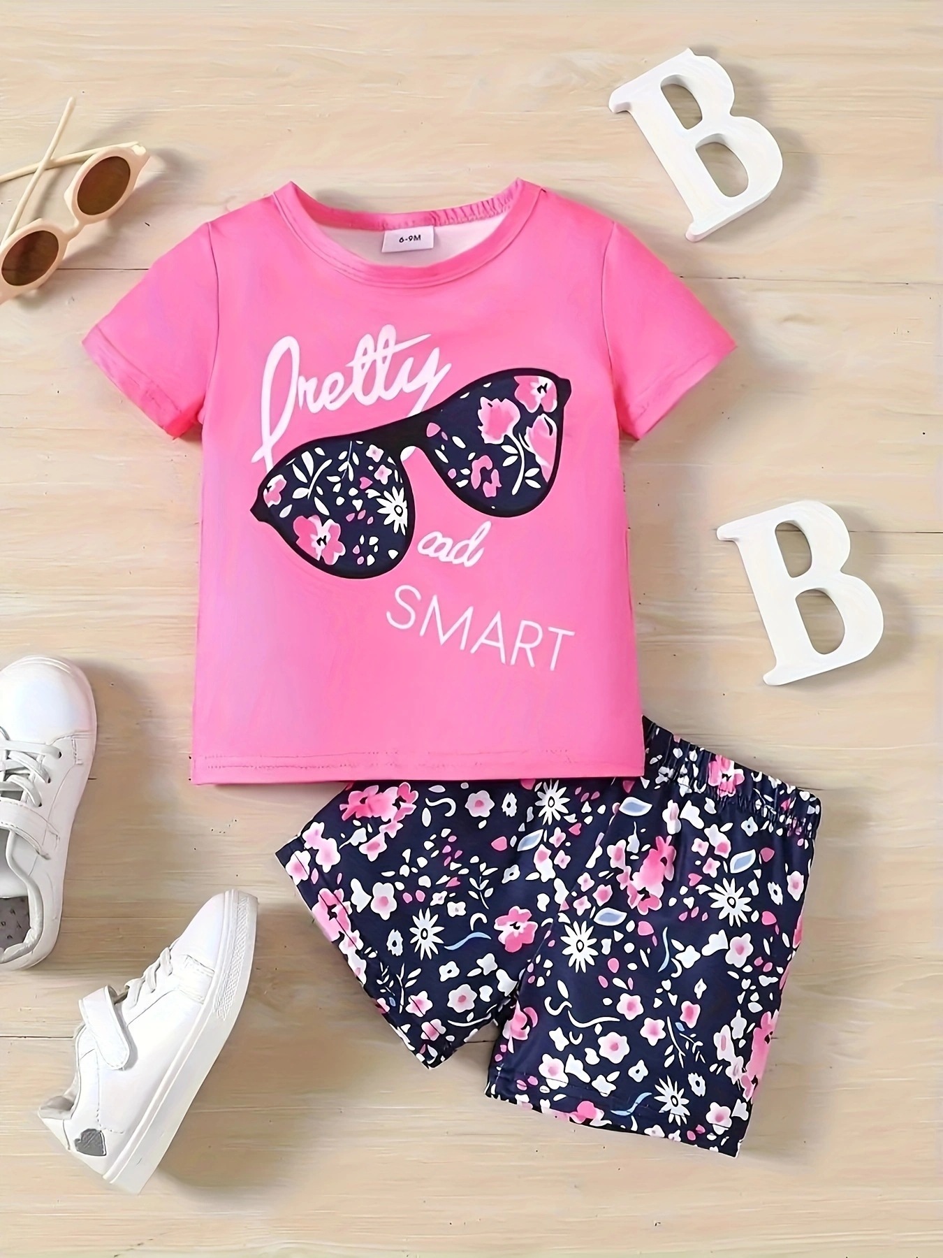 국경 간 INS 아기 소녀 여름 안경 편지 인쇄 반팔 최고 꽃 반바지 세트스토어 가기