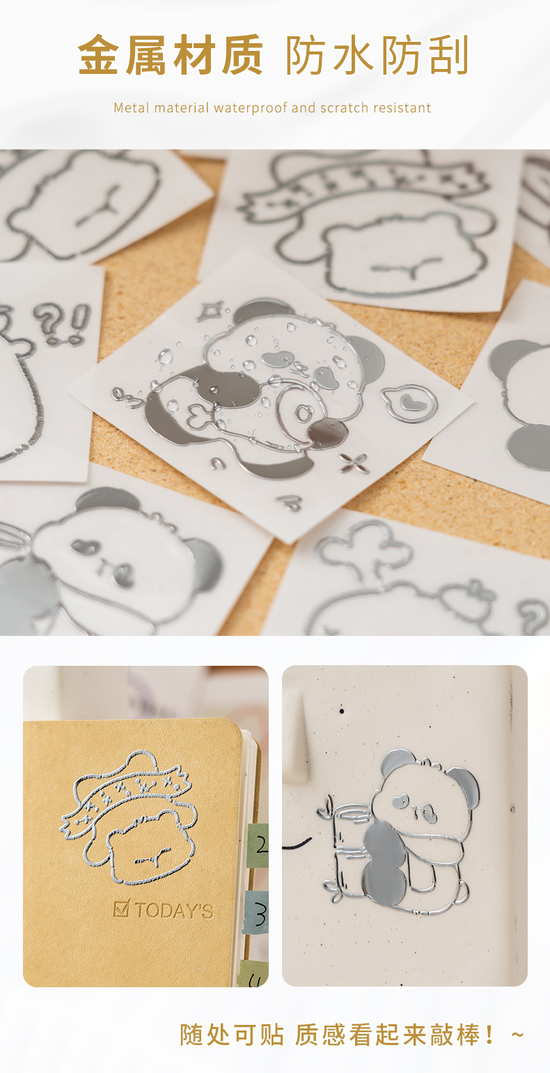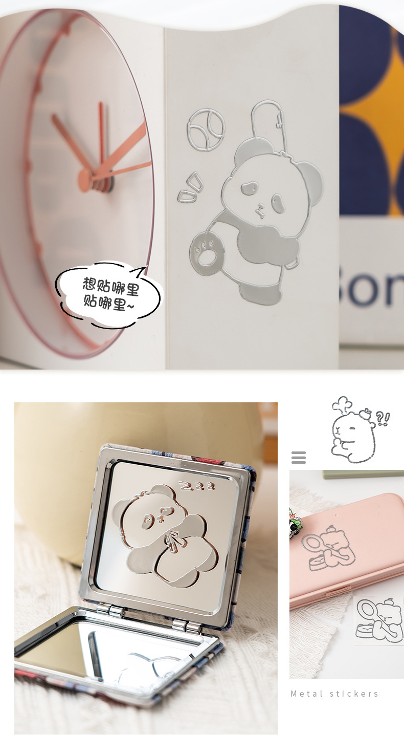 작은 동물 금속 스티커 귀여운 고가의 스티커 팬더에 바람 휴대 전화 쉘 장식 방수 만화 스티커