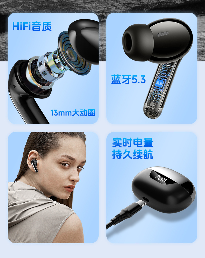 국경을 넘는 블루투스 이어폰 무선 고음질 방수 능동 소음 제거 인이어형 ANC 초장시간 배터리 IPX7 방수