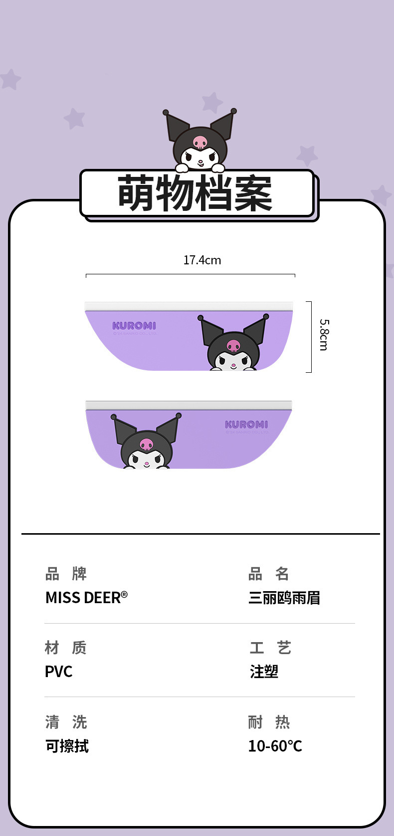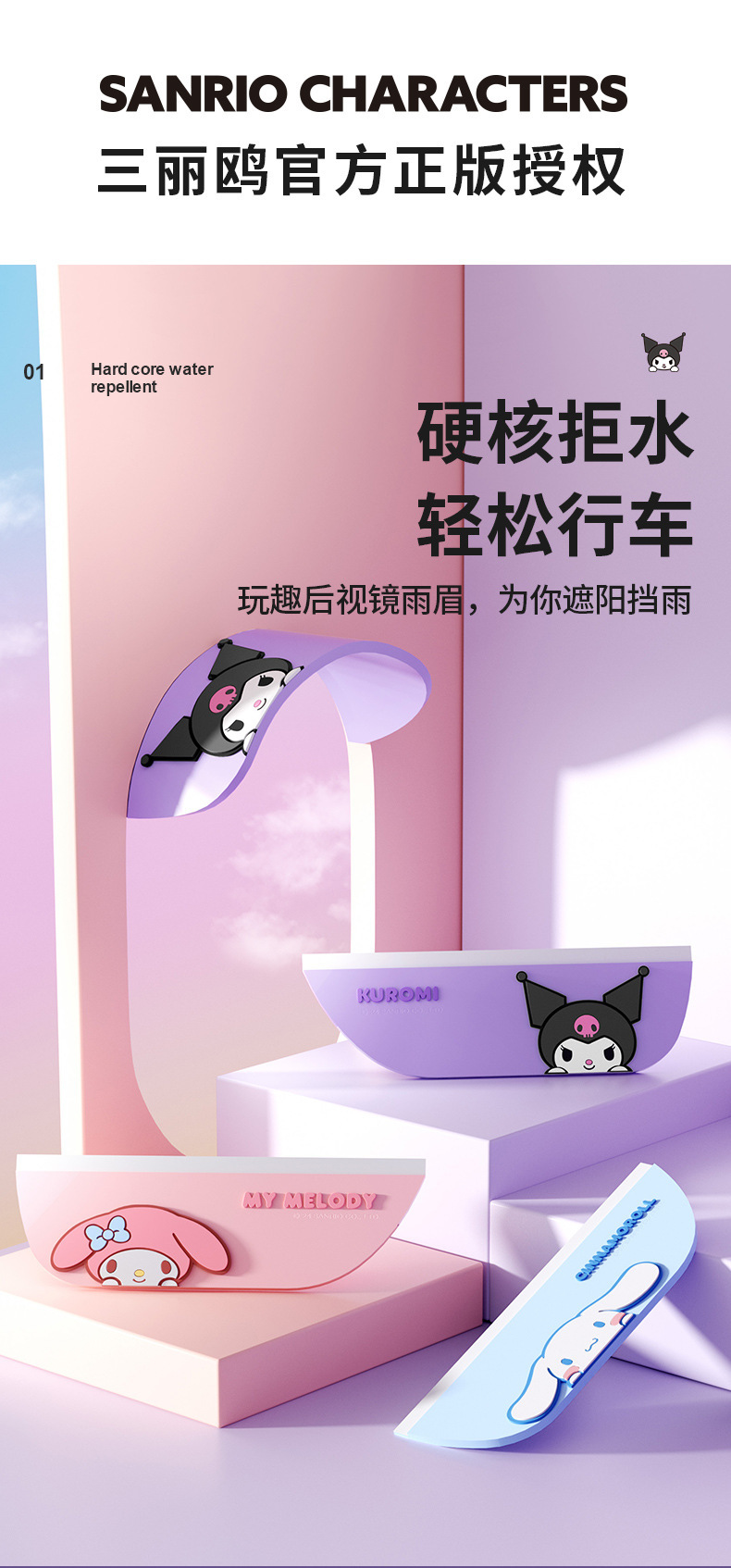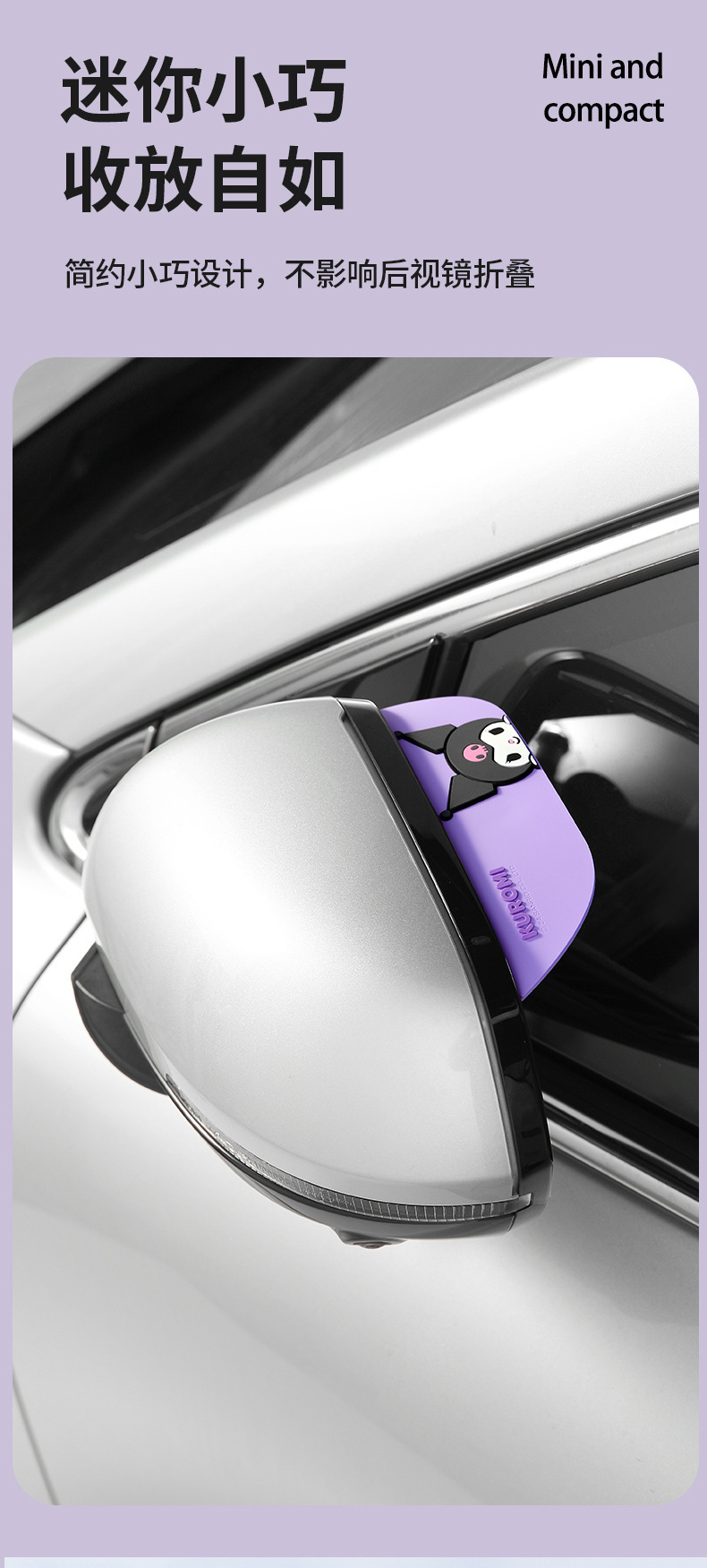 Sanrio Kulomi 자동차 백미러 레인 눈썹 자동차 백미러 레인 배플 만화 자동차 창 비 방패