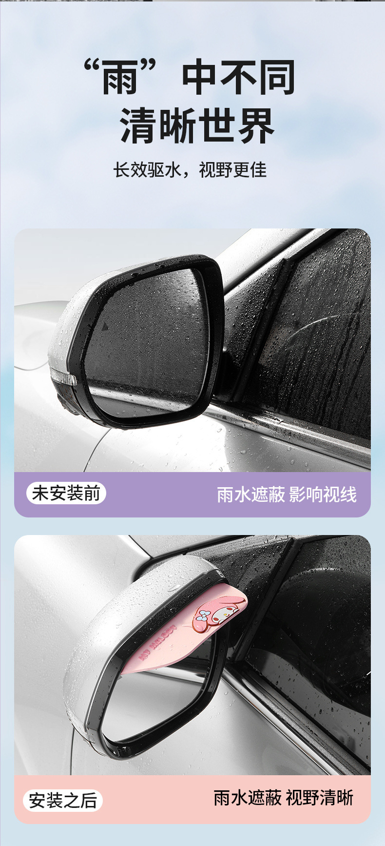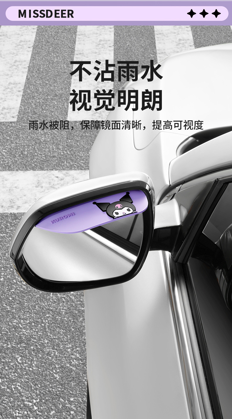 Sanrio Kulomi 자동차 백미러 레인 눈썹 자동차 백미러 레인 배플 만화 자동차 창 비 방패스토어 가기
