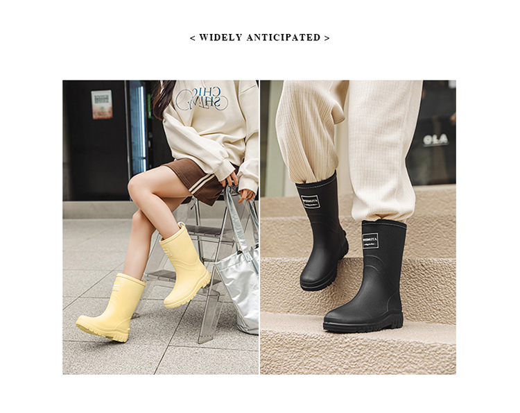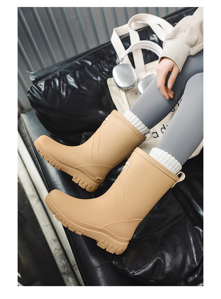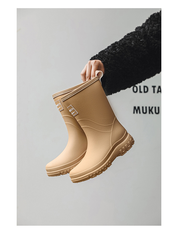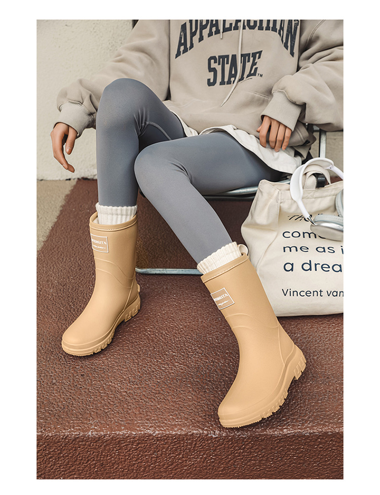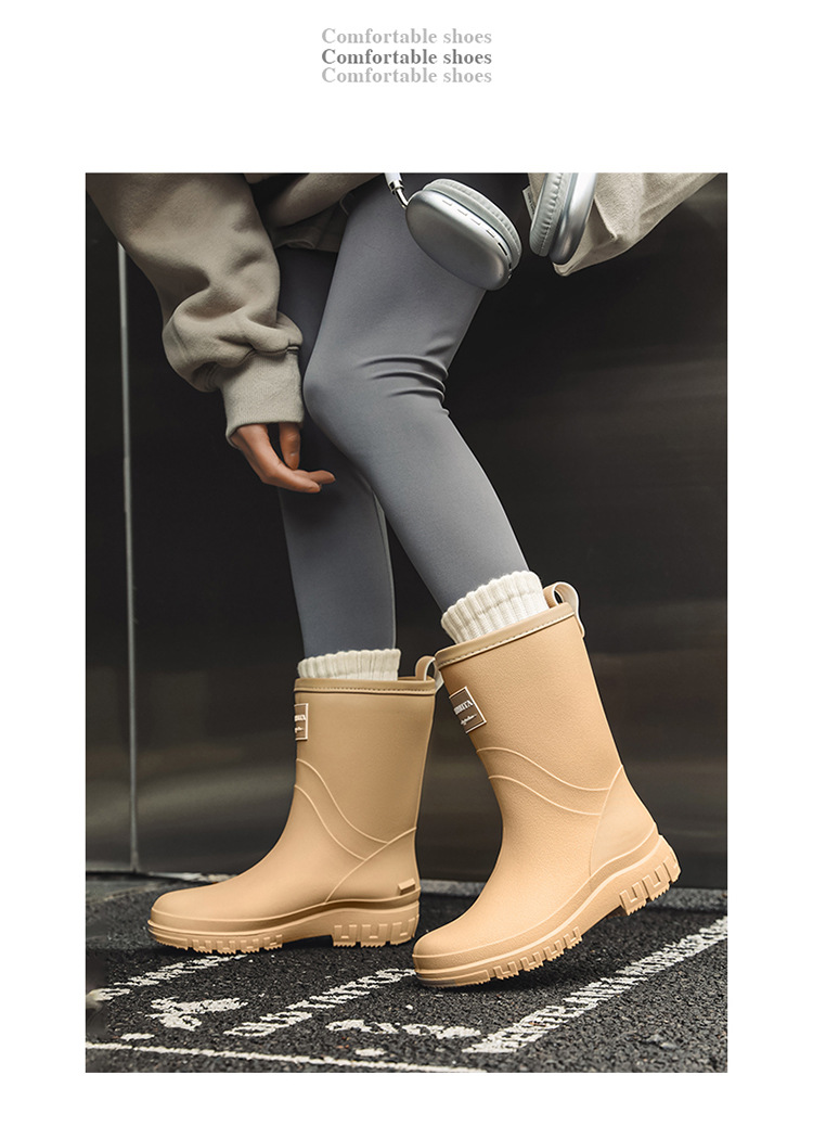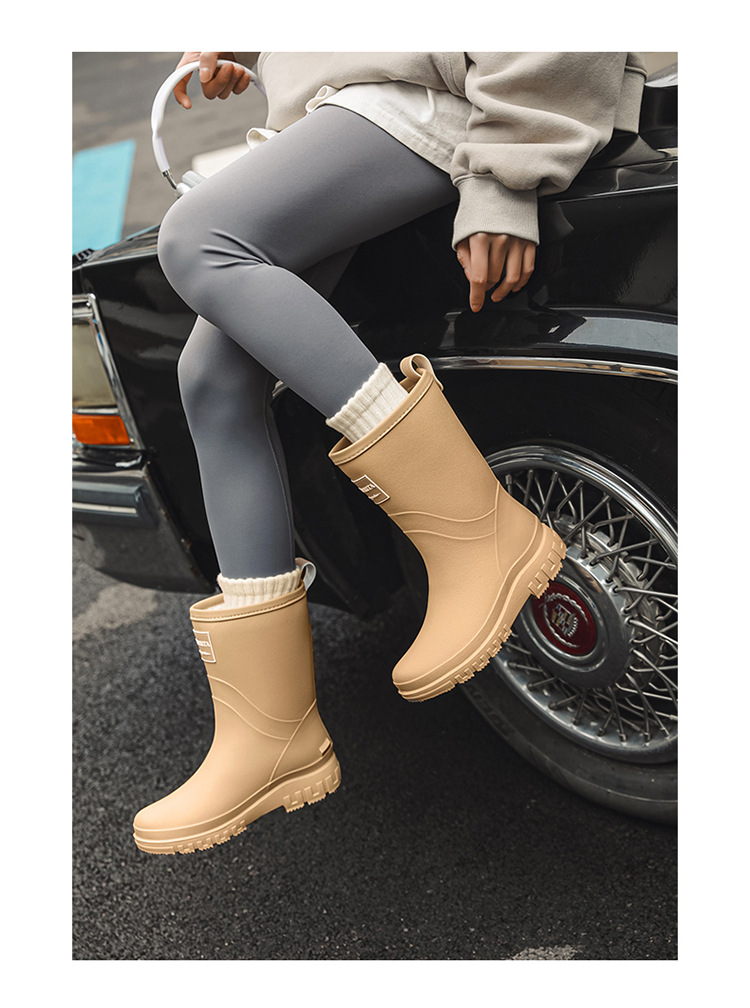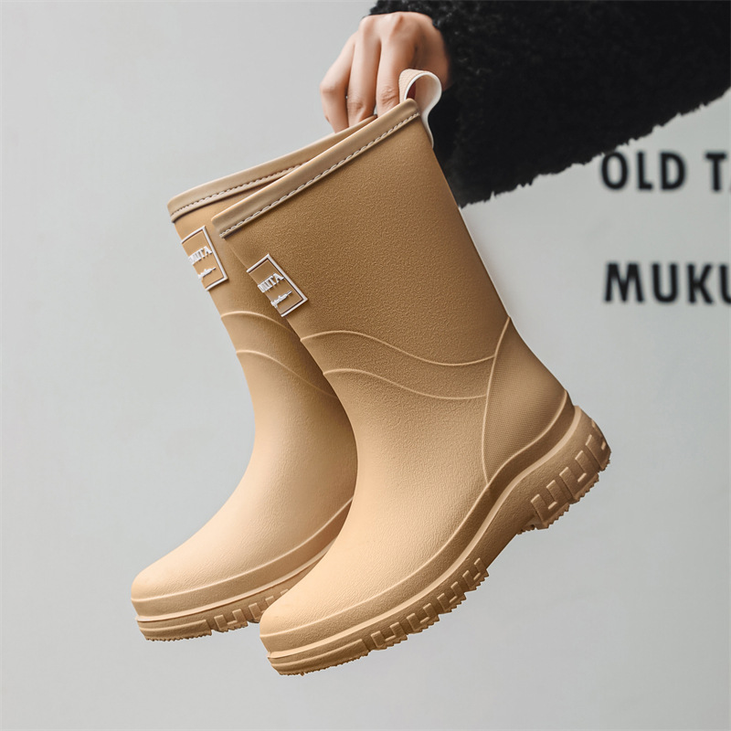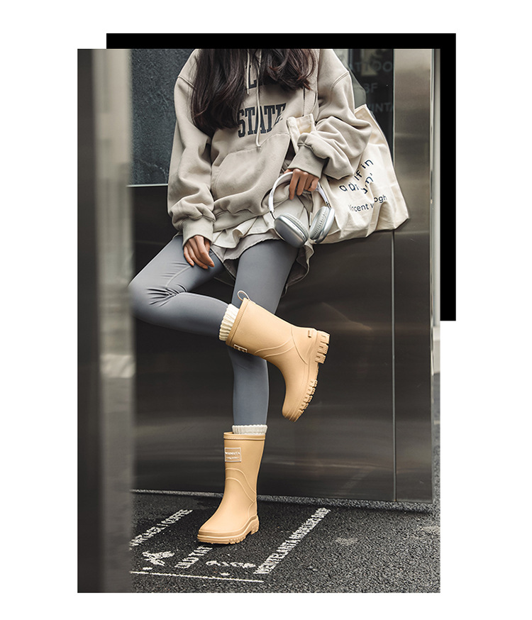 비 신발 여성의 가을 및 겨울 새 기모 통합 두꺼운 따뜻한 면화 장화 중간 높은 미끄럼 방지 방수 여성용 물 신발