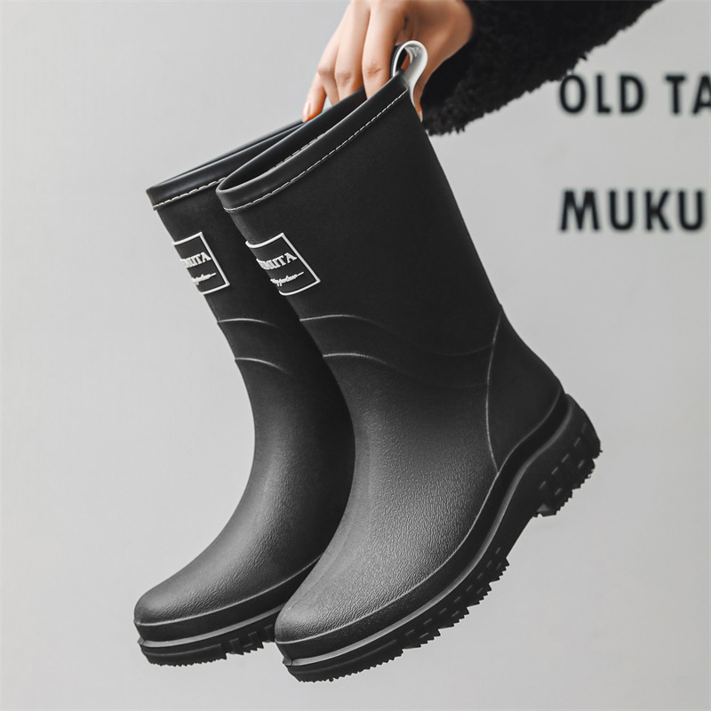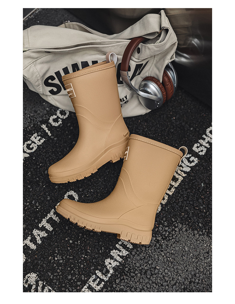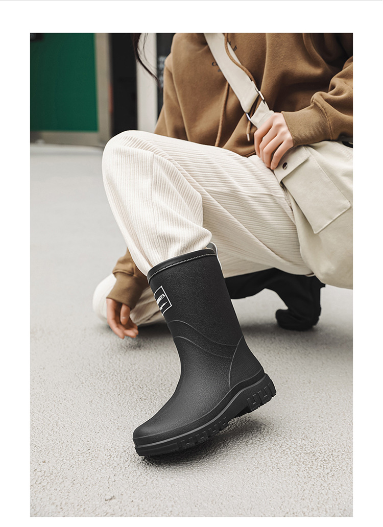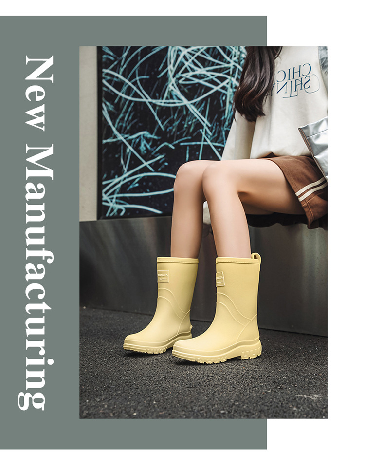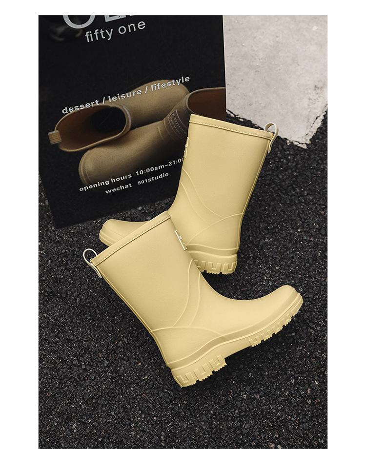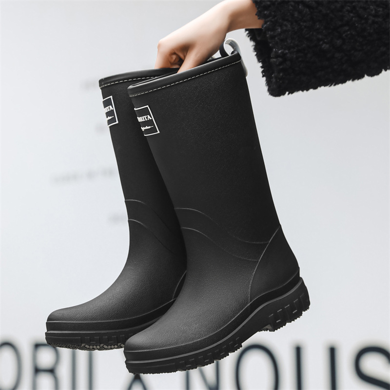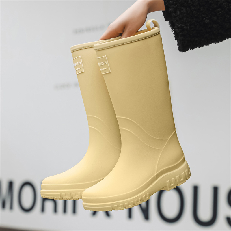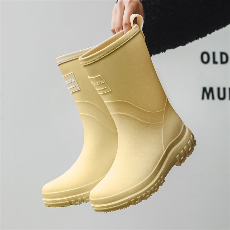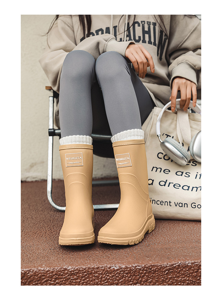 비 신발 여성의 가을 및 겨울 새 기모 통합 두꺼운 따뜻한 면화 장화 중간 높은 미끄럼 방지 방수 여성용 물 신발