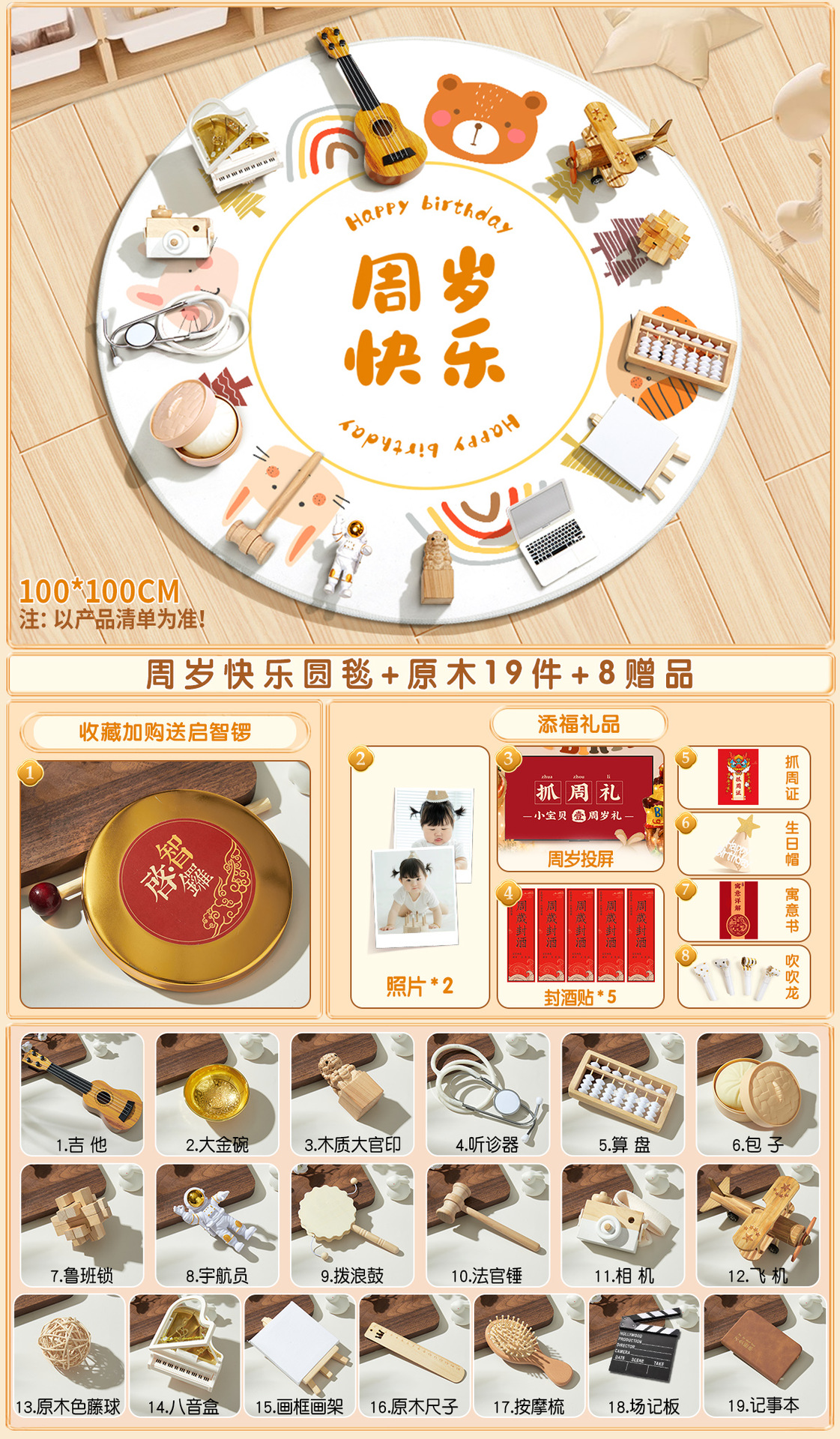 • [새로운 조합] 생일 축하 원형 담요 + 통나무 19개 + 선물 8개