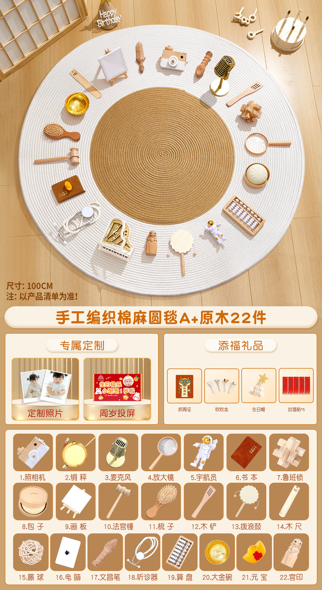 • [새로운 조합] 미색 원형 담요 + 통나무 10개 + 선물 8개