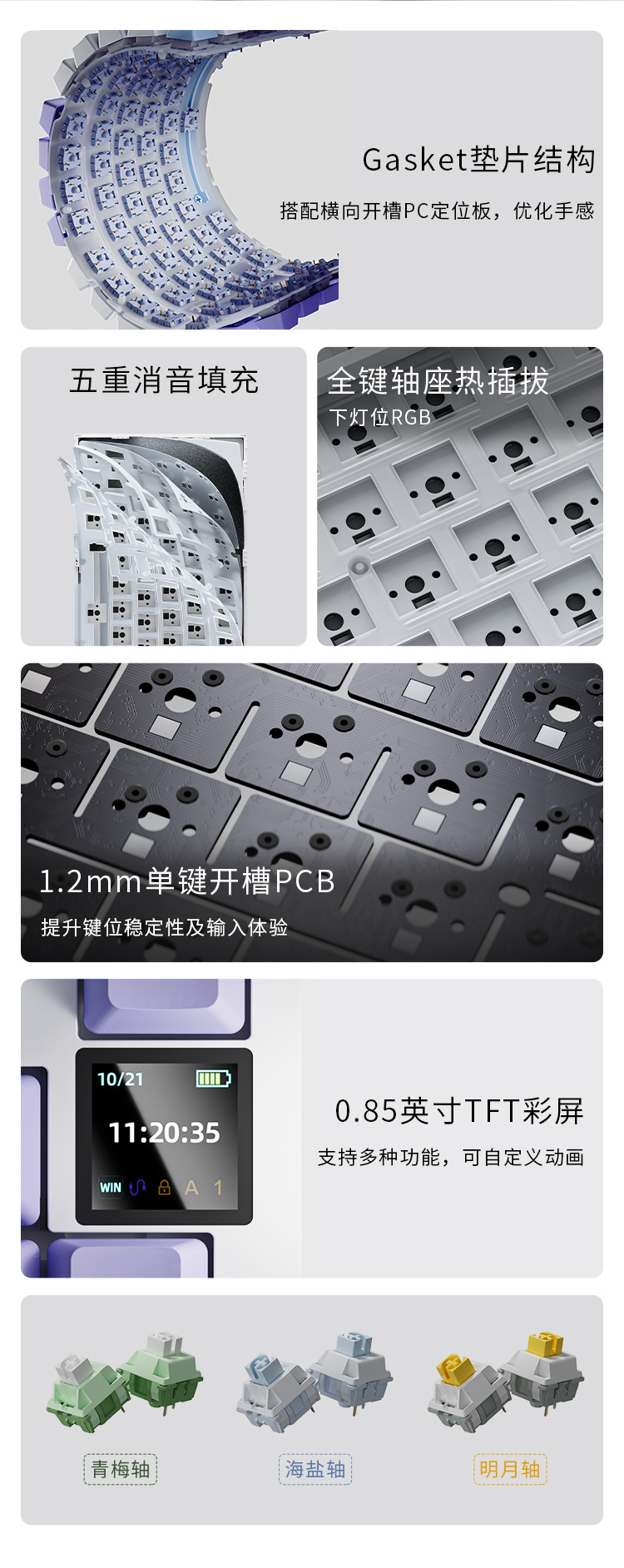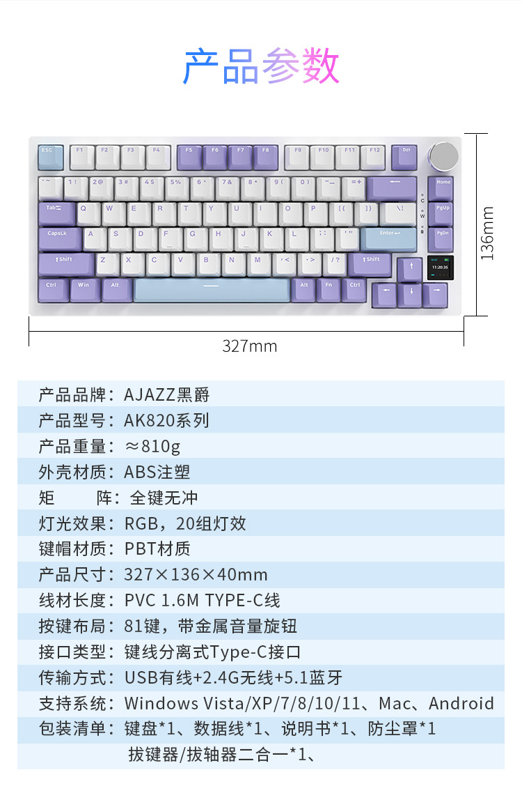 • AK820 PRO 보라색 흰색 파란색 선물 샤프트 3 형 RGB DIY