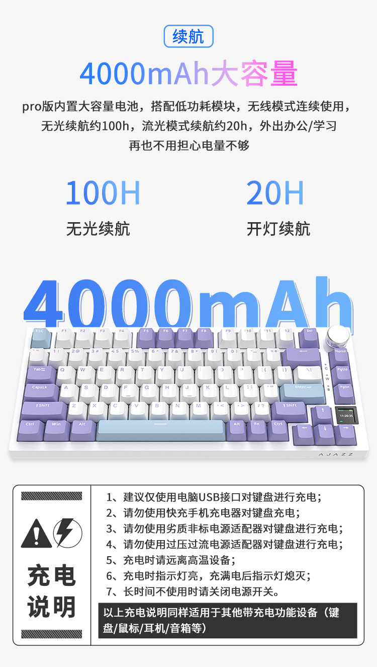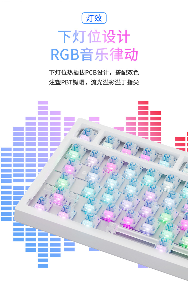 • AK820 PRO 비행 물고기 샤프트 흰색 측면 새겨진 PBT 키 캡 3 모드 RGB DIY