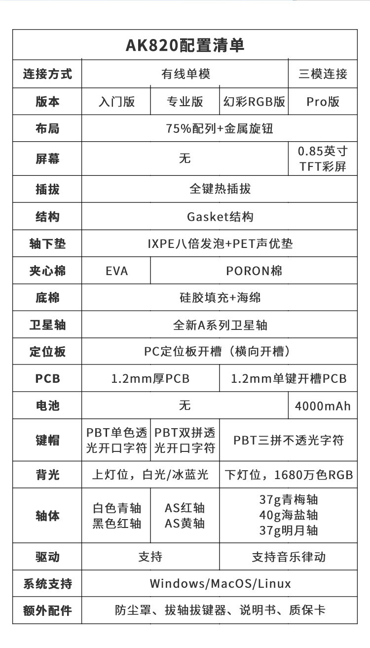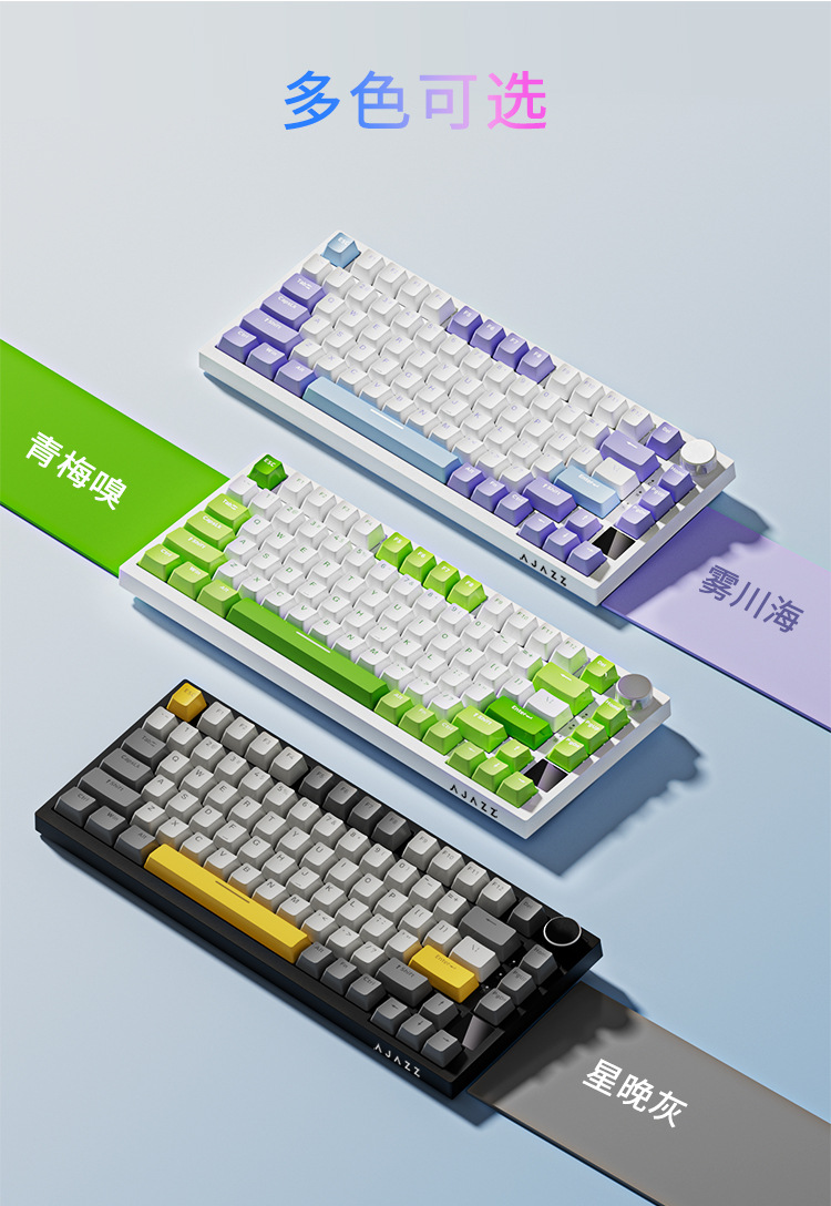 블랙 Jue AK820pro 무선 블루투스 3 모드 기계 키보드 맞춤형 75 핫 플러그 가스켓 게임 측면스토어 가기