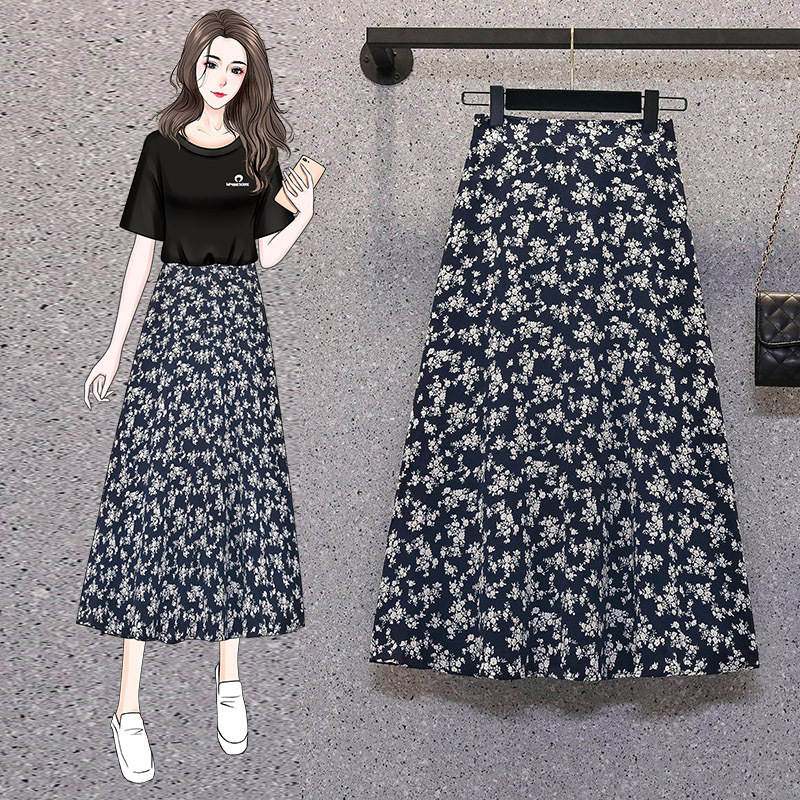 2024 우아한 플러스 사이즈 통통녀 여름 여자 친구 A-라인 원피스 높은 허리 꽃 원피스 중간 길이의 올매치 슬리밍 스커트스토어 가기