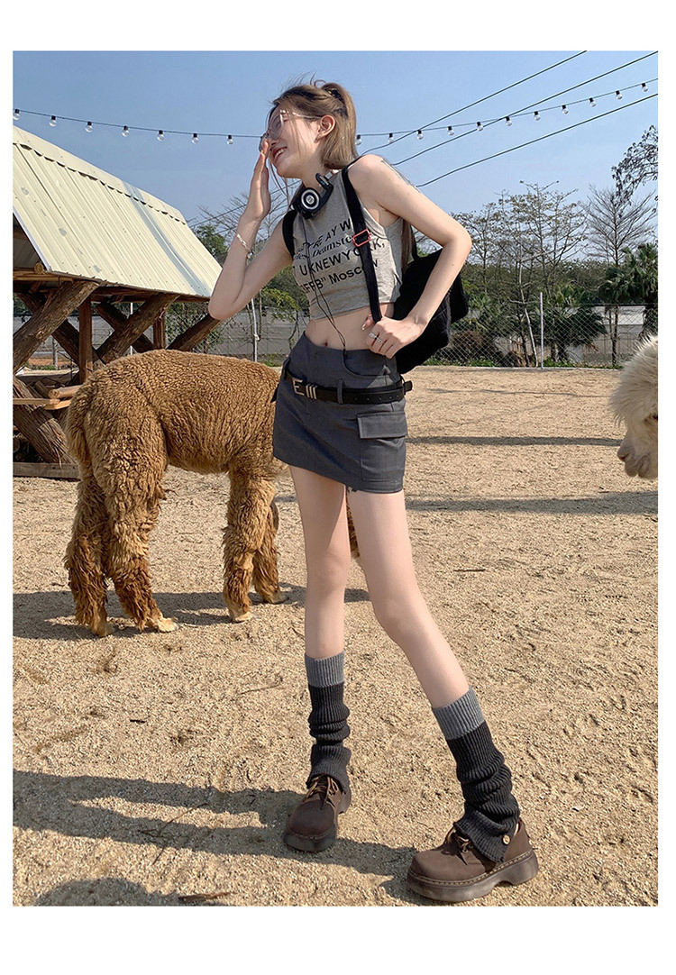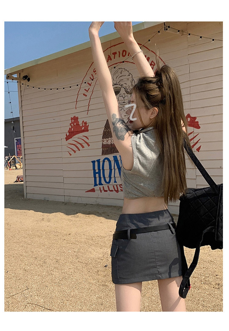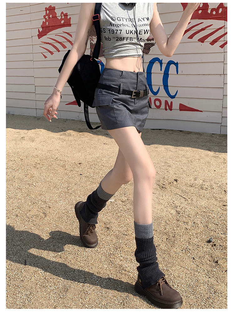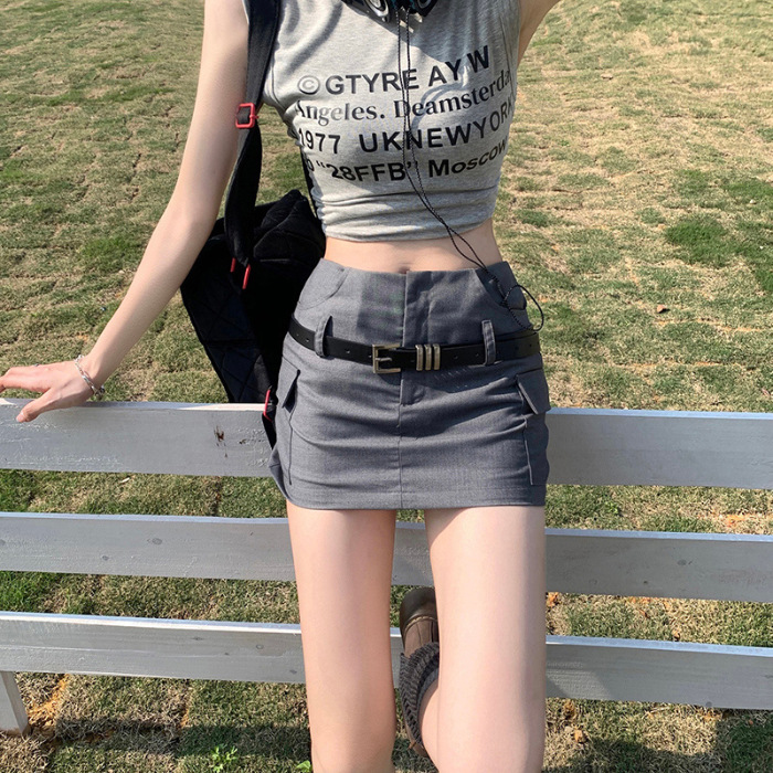 회색 작업 치마 여성 여름 디자인 뜨거운 소녀 높은 허리 슬리밍 모든 경기 A 라인 엉덩이 세트 절반 길이 치마스토어 가기