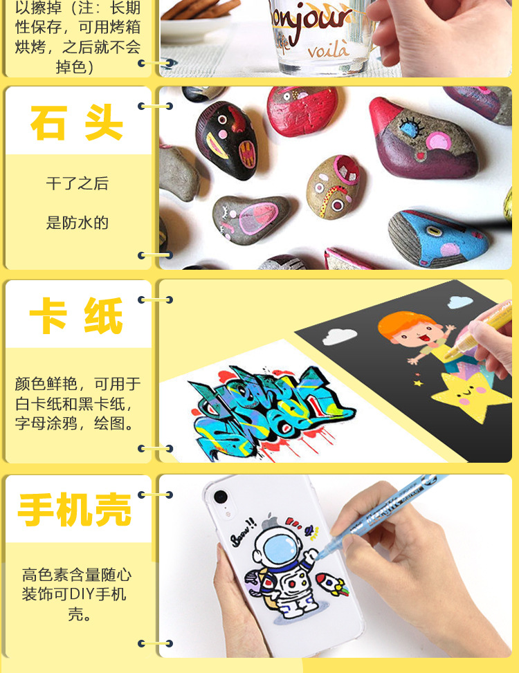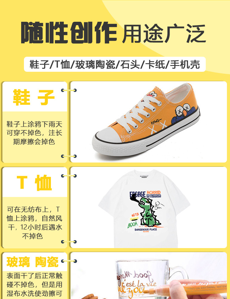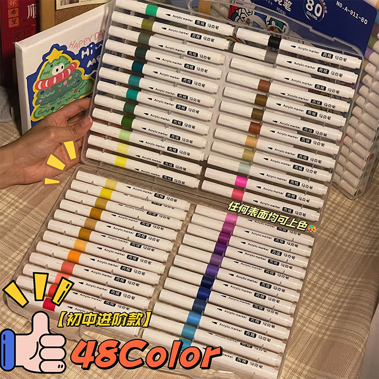 마크 펜 15 컬러 80 아크릴 높은 색상 가치 DIY 투명 우산 신발 대용량 아트 특수 방수 비넷스토어 가기