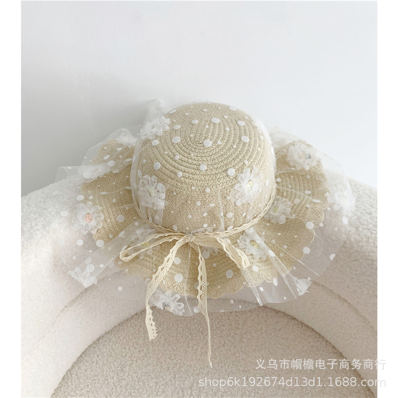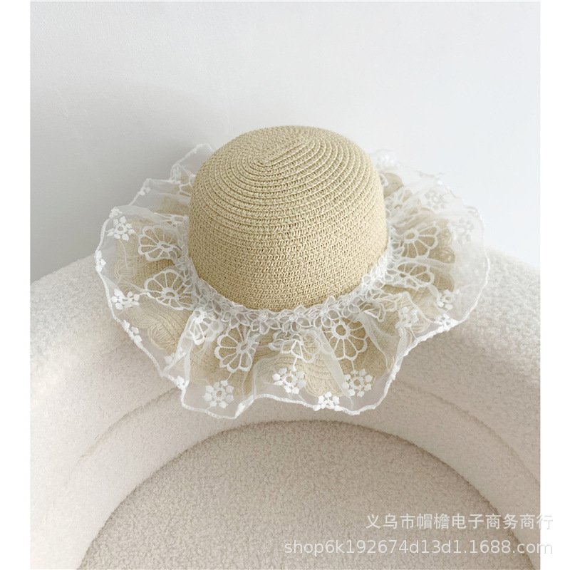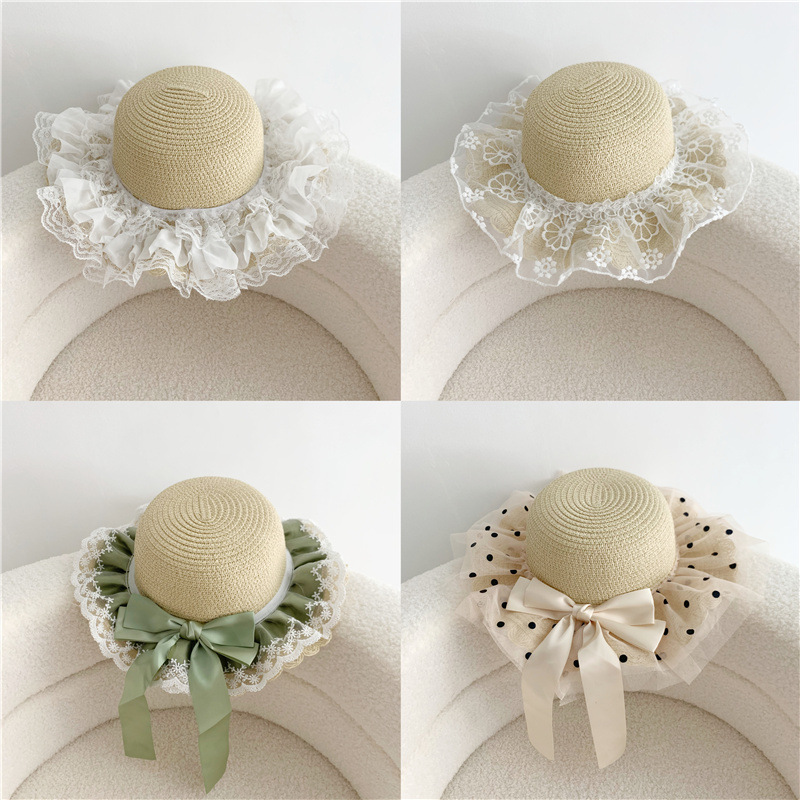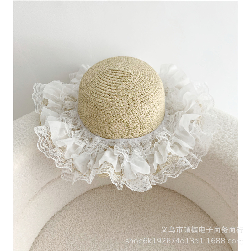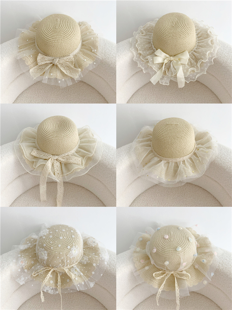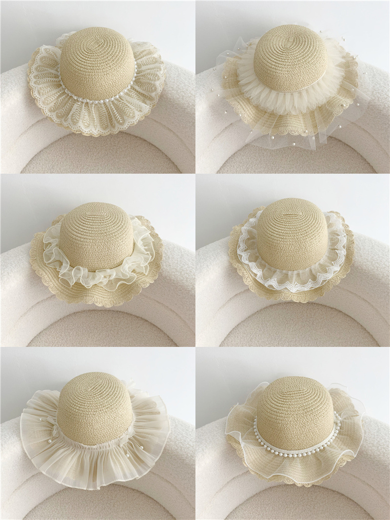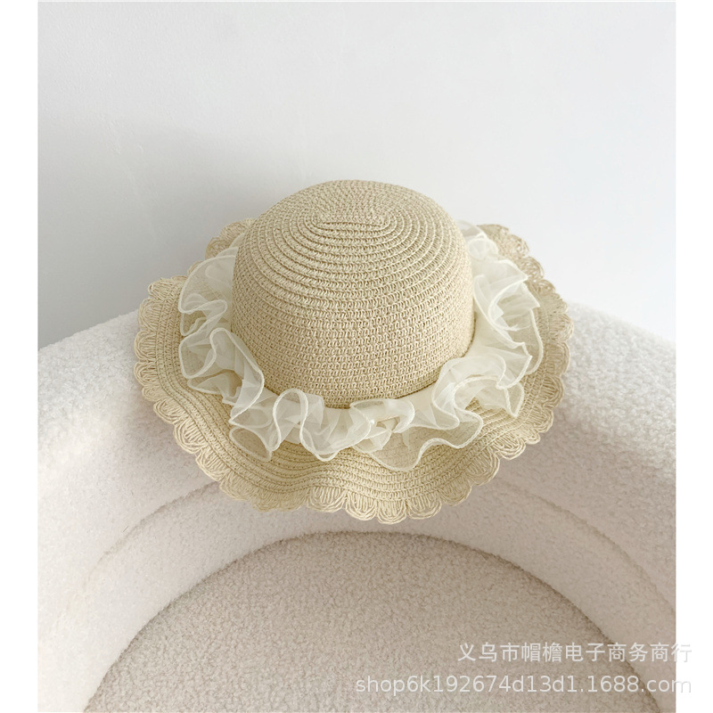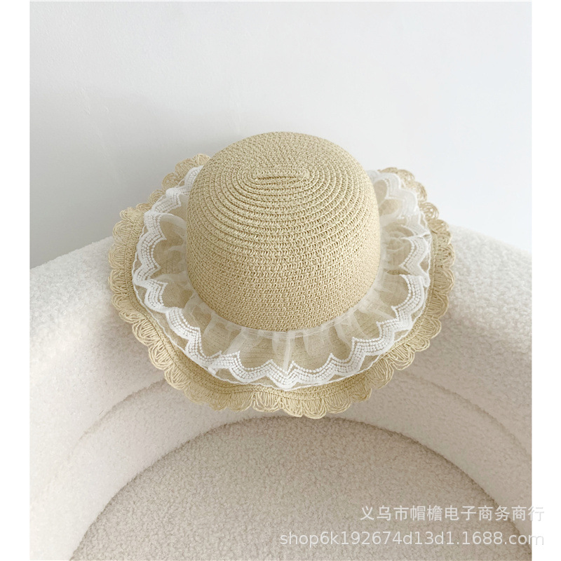 어린이 세련된 밀짚 모자 여름 착용 소녀 콘동굴 스타일 공주 모자 슈퍼 페어리 메쉬 레이스 비치 모자스토어 가기