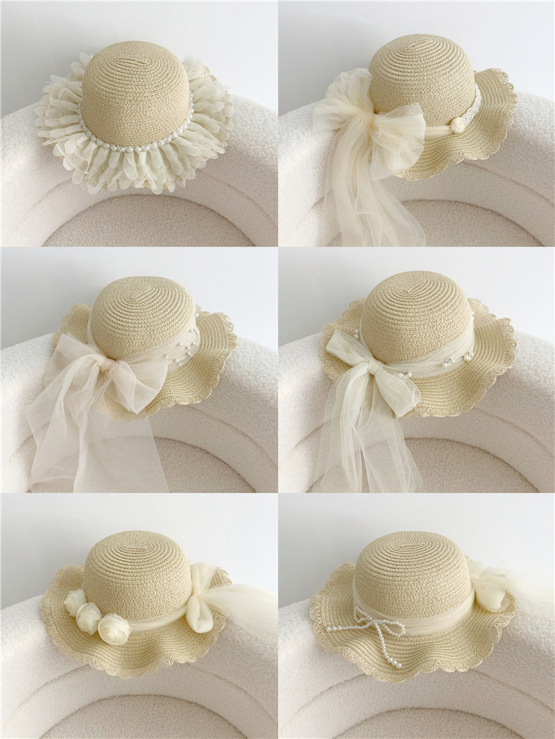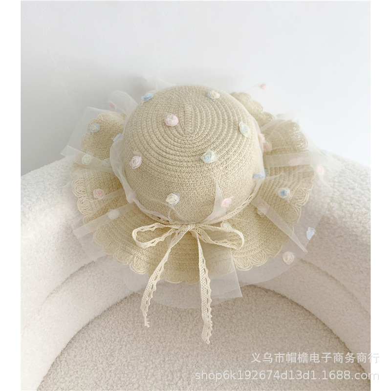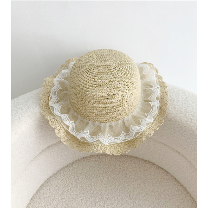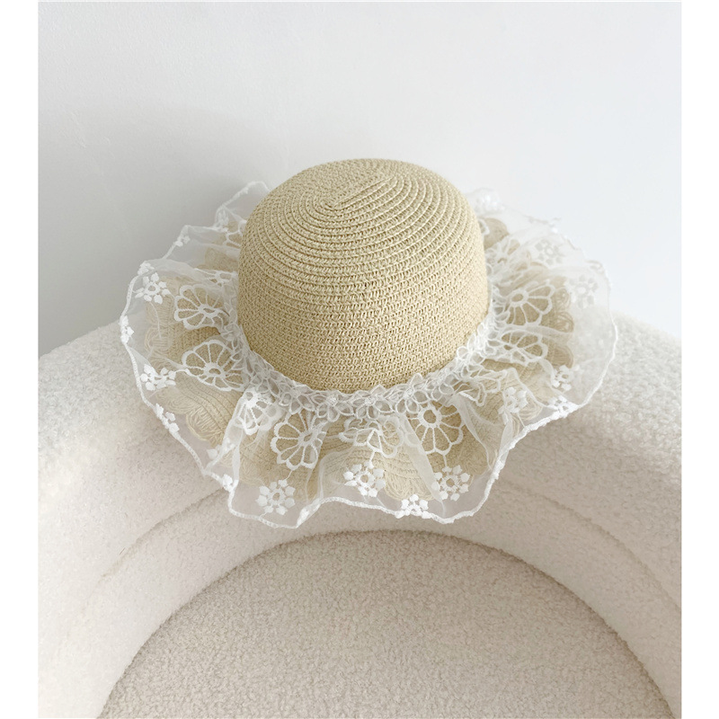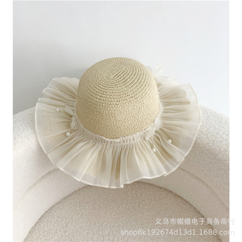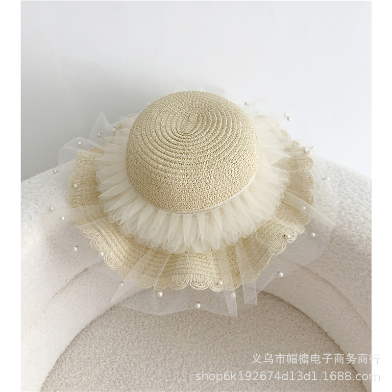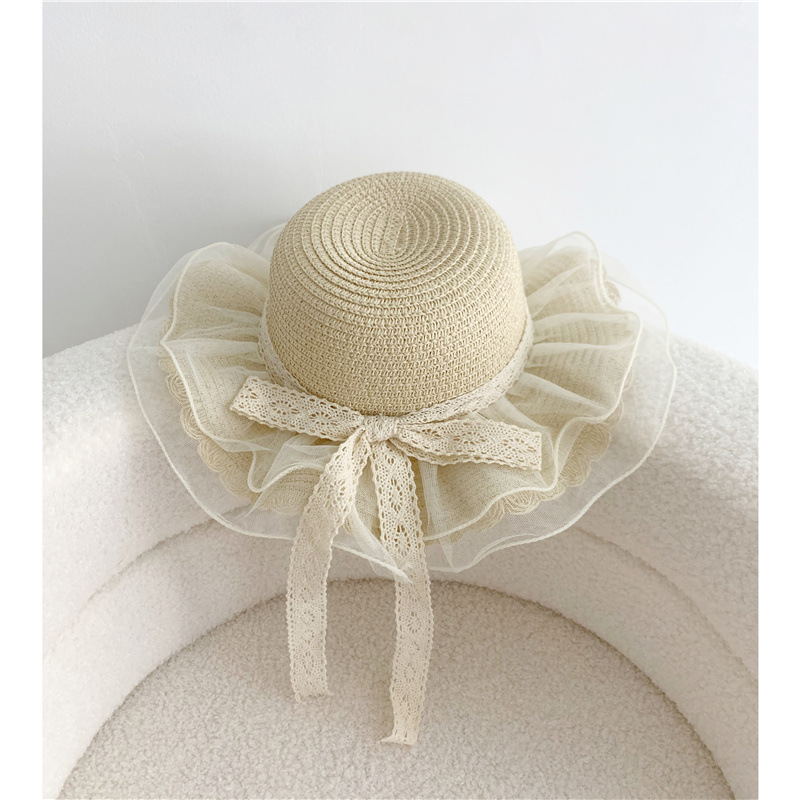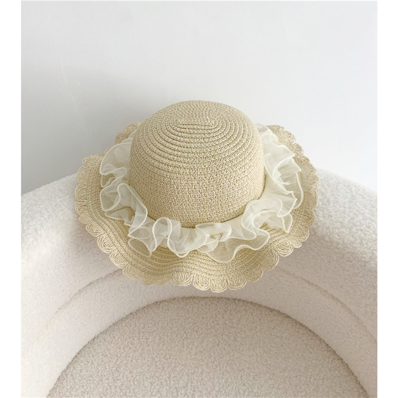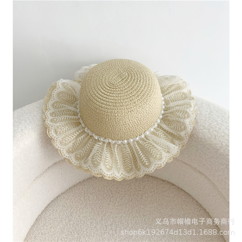 어린이 세련된 밀짚 모자 여름 착용 소녀 콘동굴 스타일 공주 모자 슈퍼 페어리 메쉬 레이스 비치 모자스토어 가기