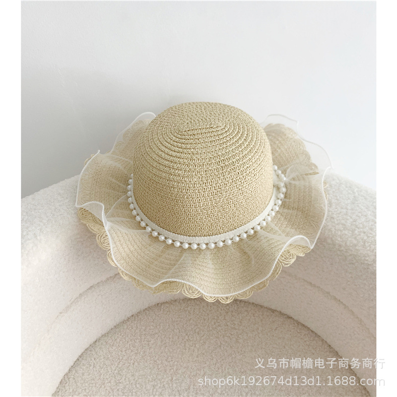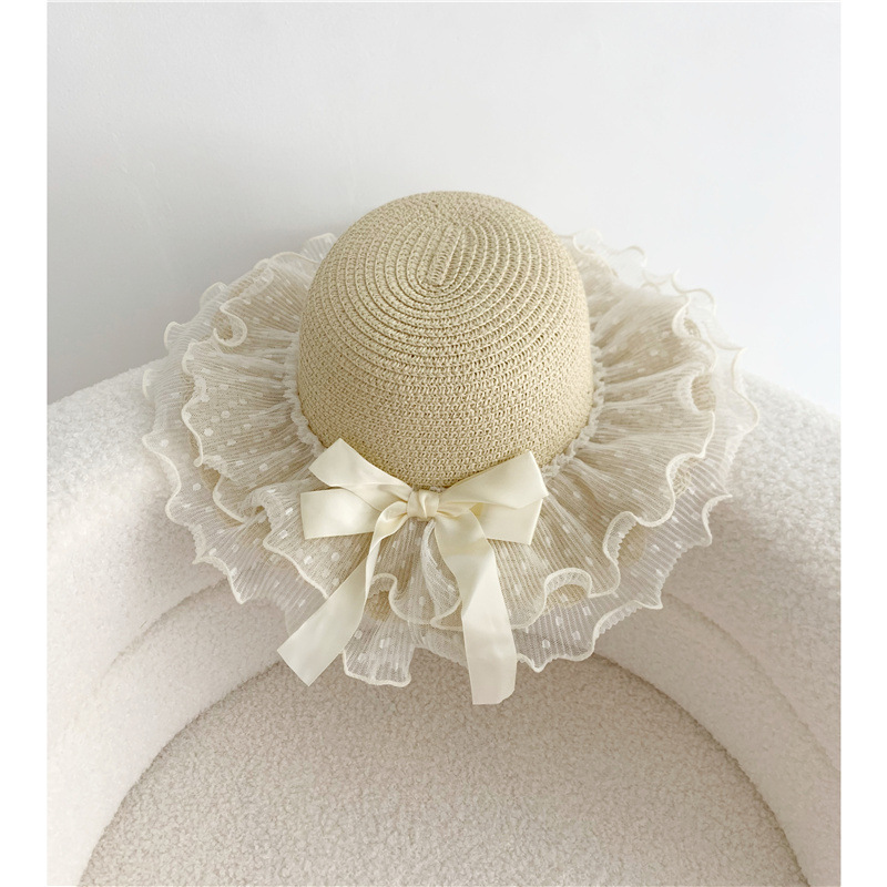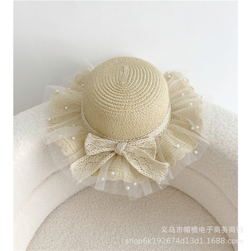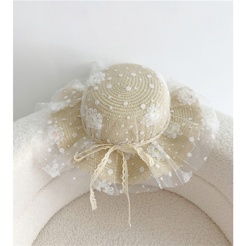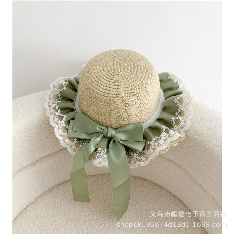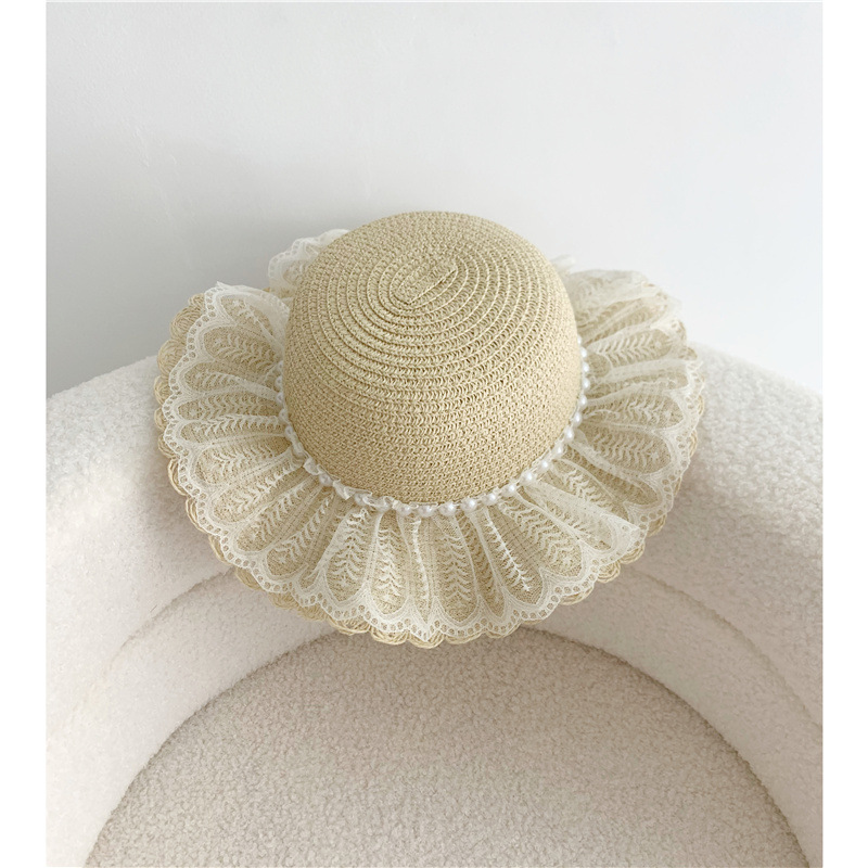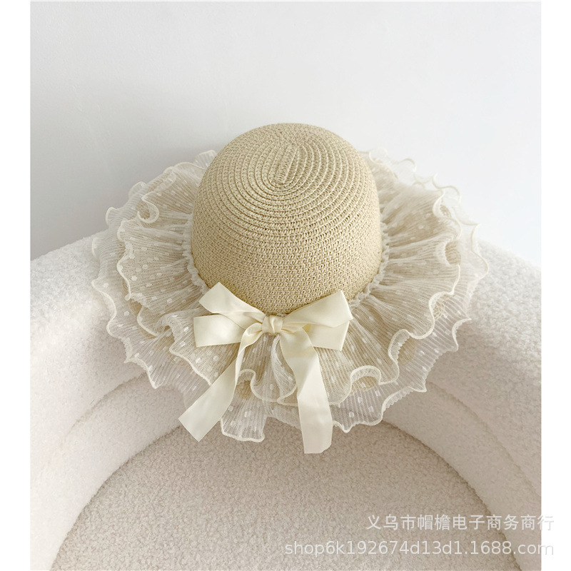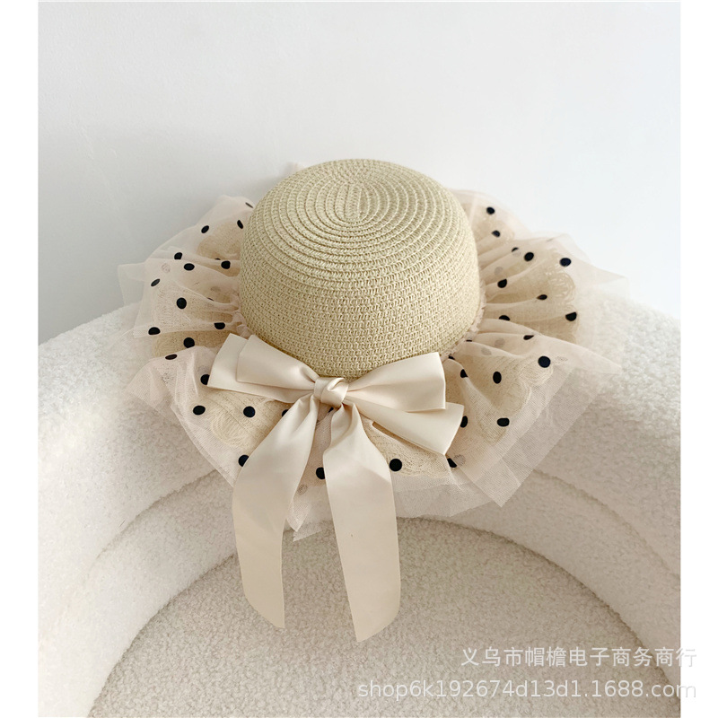 어린이 세련된 밀짚 모자 여름 착용 소녀 콘동굴 스타일 공주 모자 슈퍼 페어리 메쉬 레이스 비치 모자스토어 가기