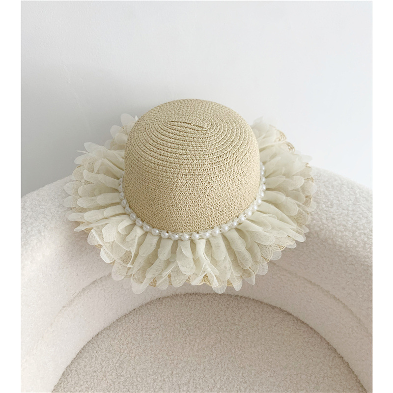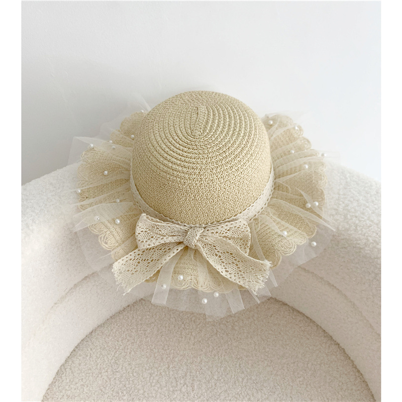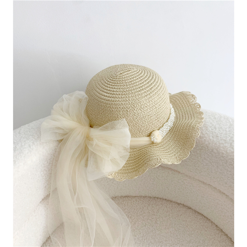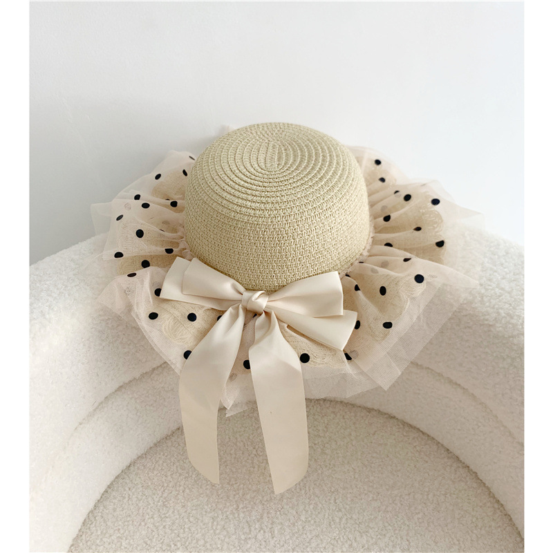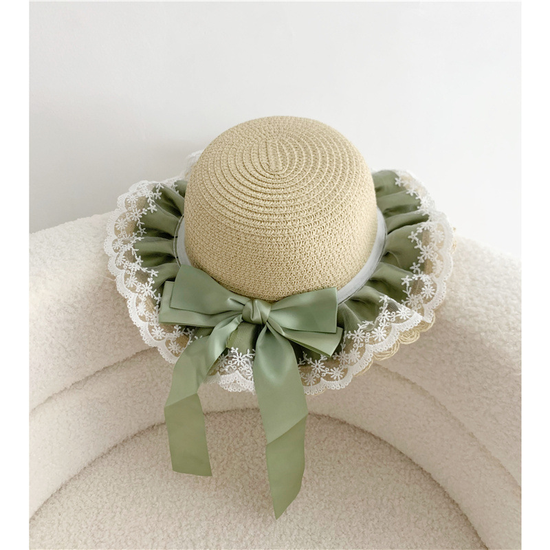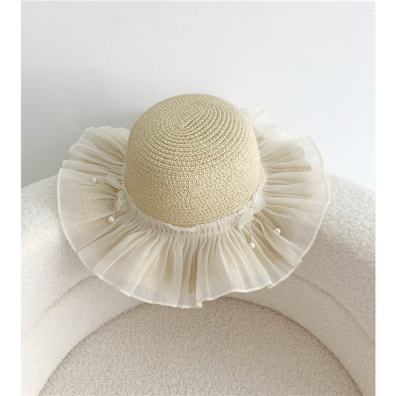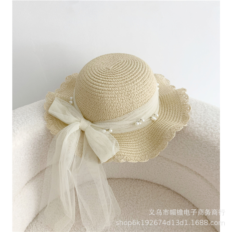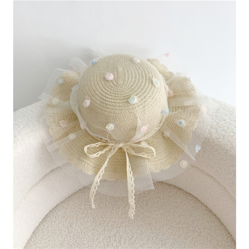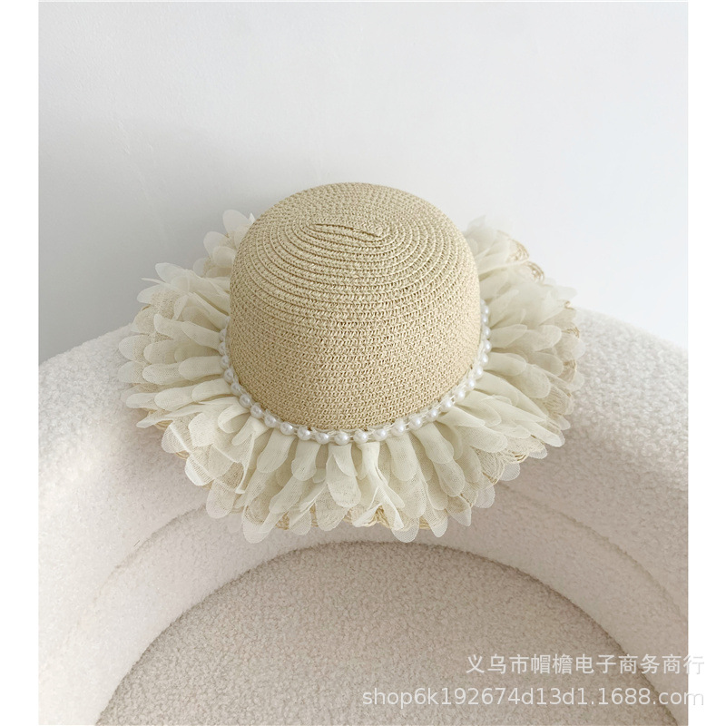어린이 세련된 밀짚 모자 여름 착용 소녀 콘동굴 스타일 공주 모자 슈퍼 페어리 메쉬 레이스 비치 모자스토어 가기