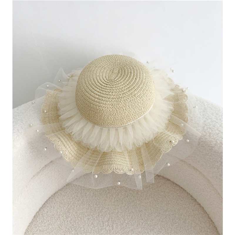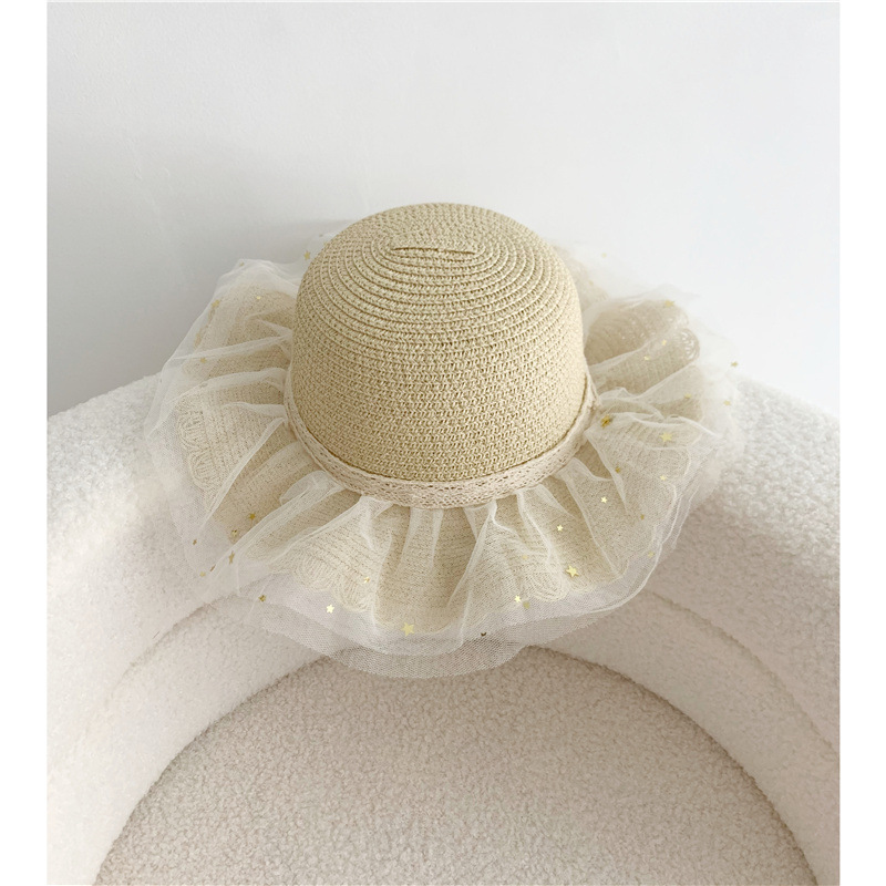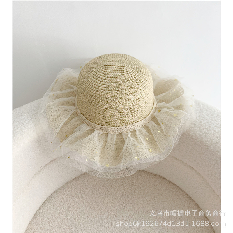 어린이 세련된 밀짚 모자 여름 착용 소녀 콘동굴 스타일 공주 모자 슈퍼 페어리 메쉬 레이스 비치 모자