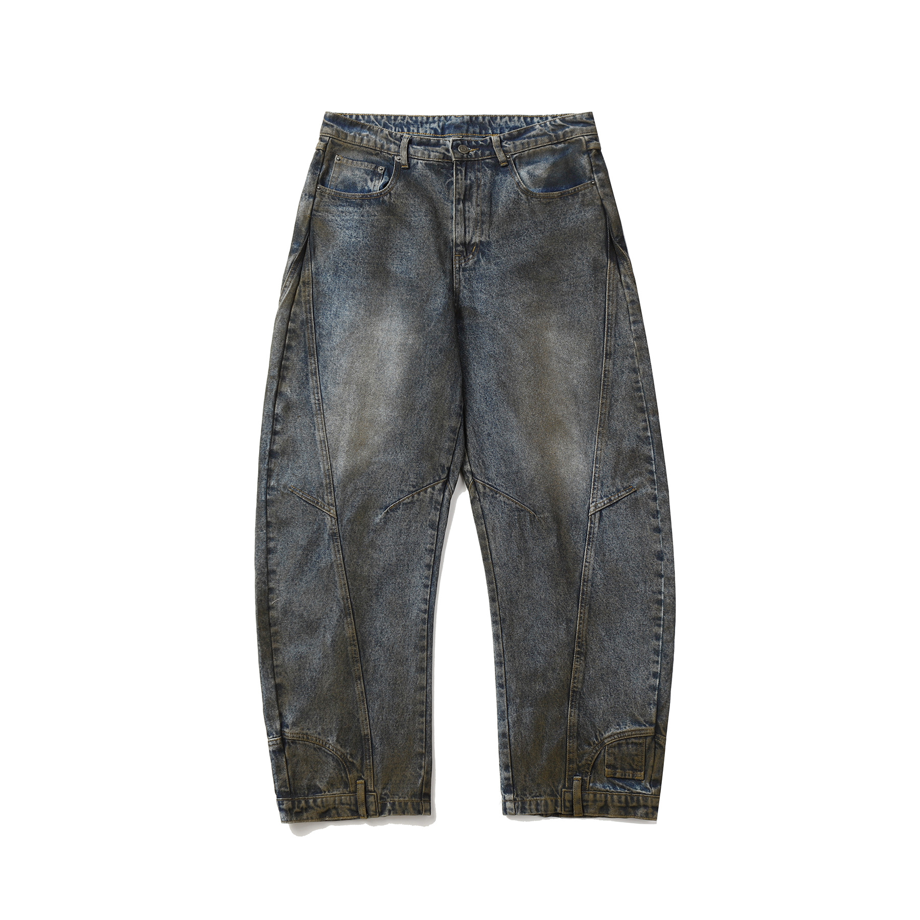 아메리칸 스타일 복고풍 폐기물 지구 스타일 청바지 남성과 여성의 거리 패션 느슨한 캐주얼 트렌디 브랜드 내 올 매치 스트레이트 바지
