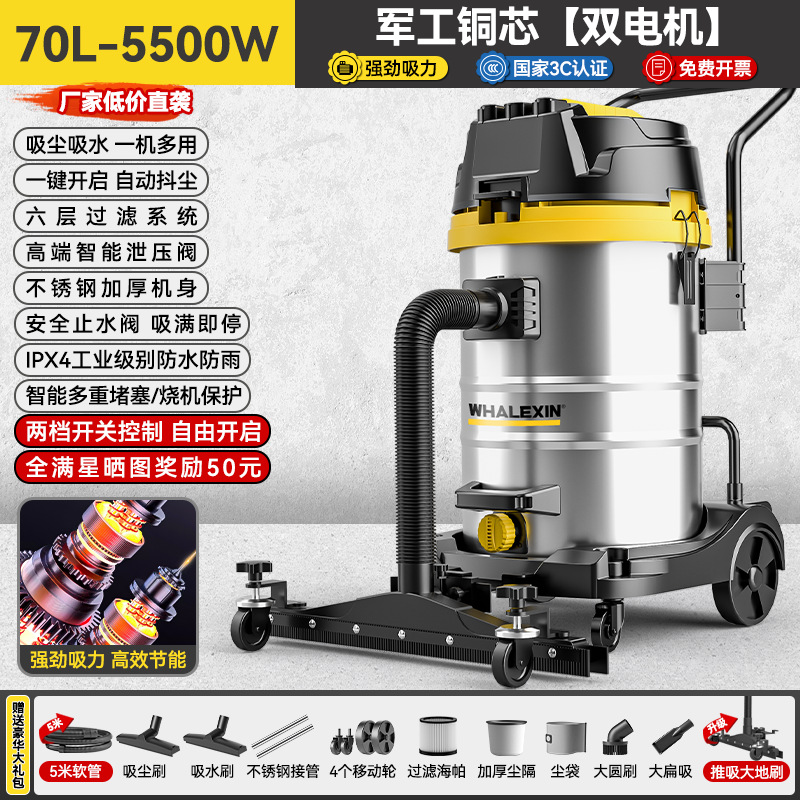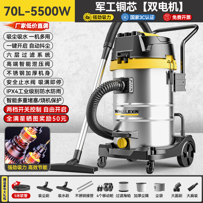• 푸시 및 흡입 모델 70L [5500W 피크 전력] 내장 이중 구리 모터 + 5m 튜브 + 1