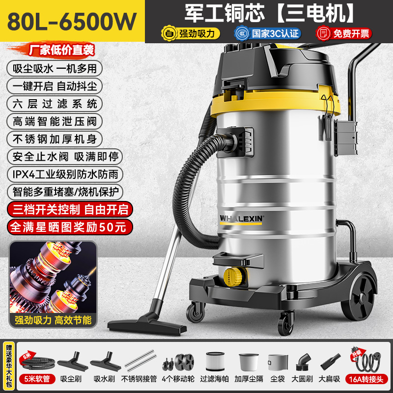 • 푸시 및 흡입 모델 80L [6500W 피크 전력] 3개의 대형 구리 모터 내장 + 5m 튜브 +