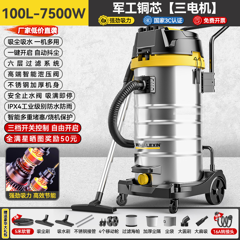 • 푸시 및 흡입 모델 100L [7500W 피크 전력] 3 가변 주파수 구리 대형 모터 내장 +5