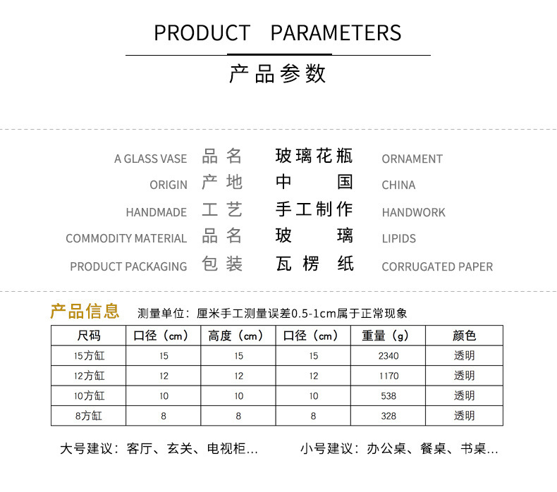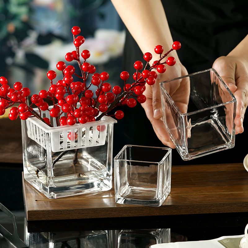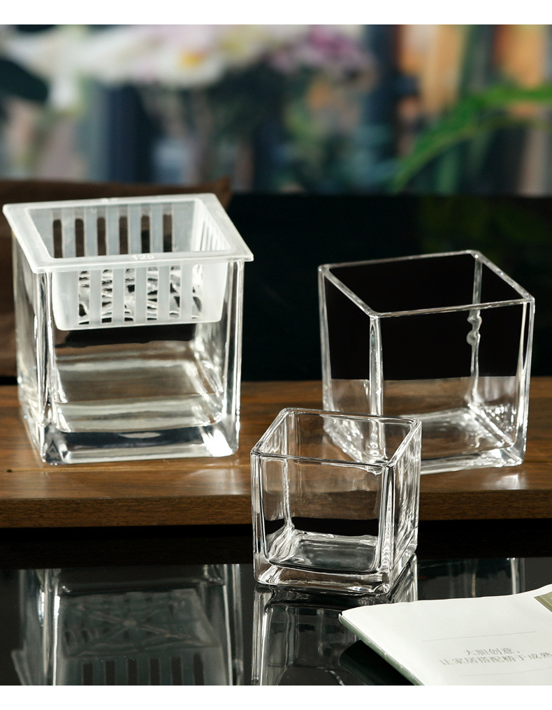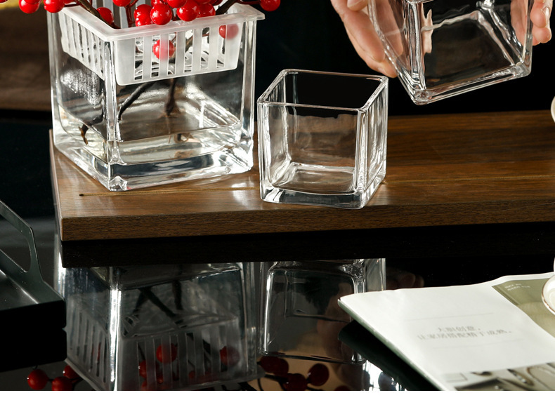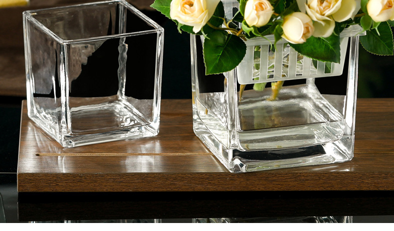 스퀘어 실린더 간단한 스퀘어 수경 녹색 심기 구리 꽃 냄비 화이트 팜 그린 로즈 물 유리 투명 꽃병 장식품