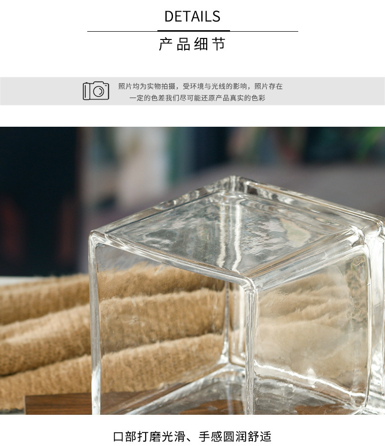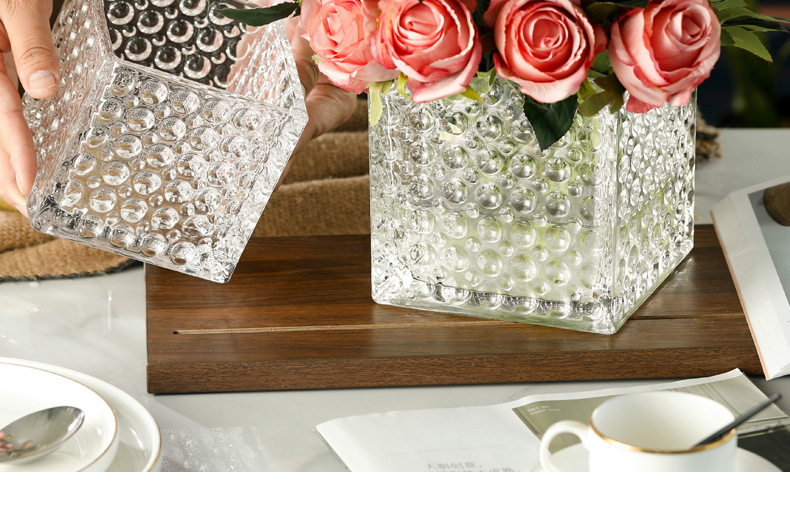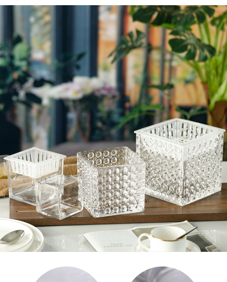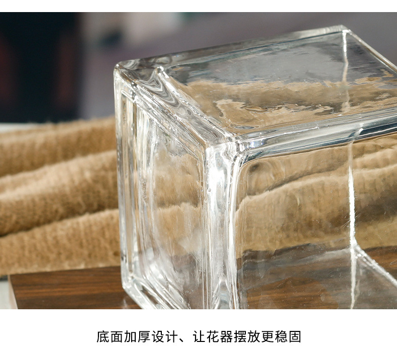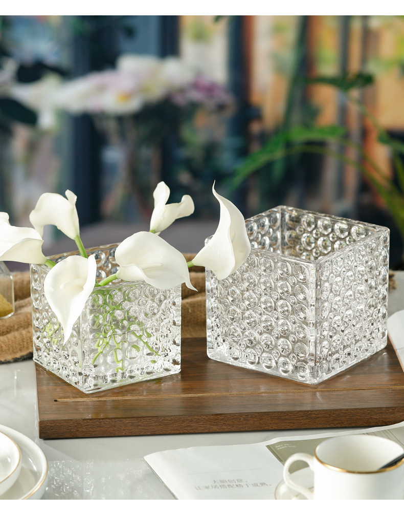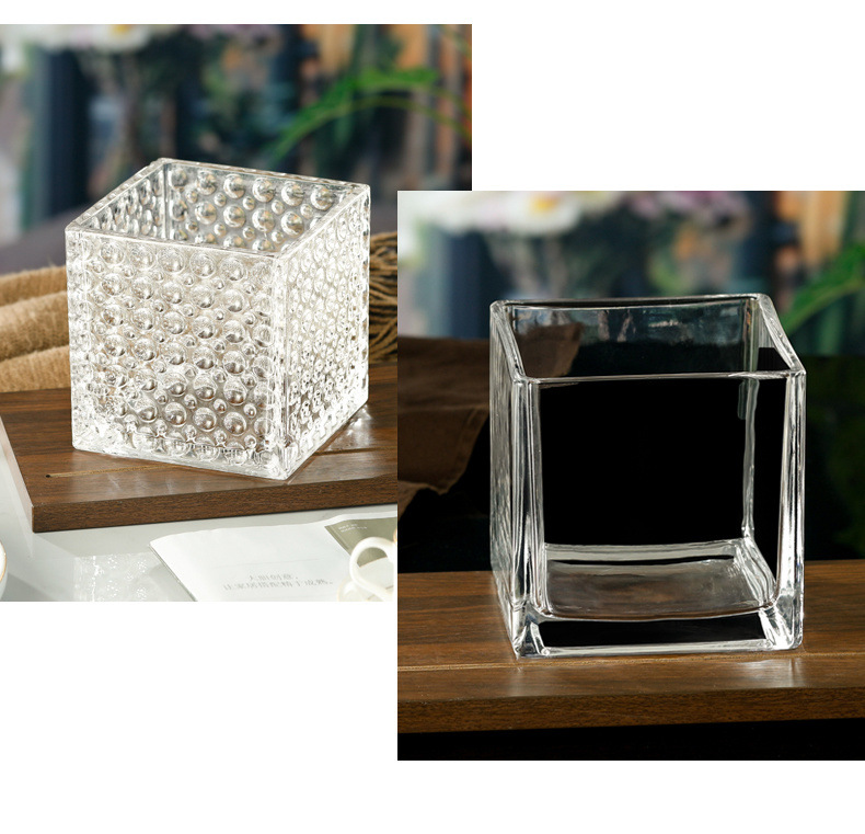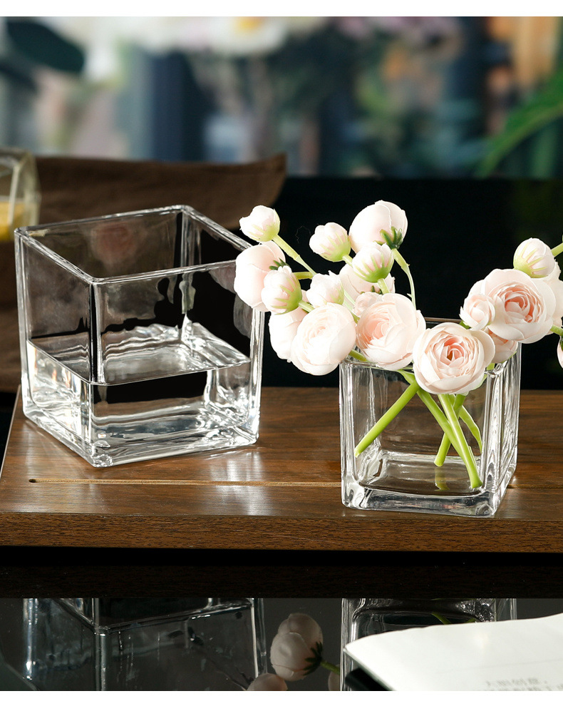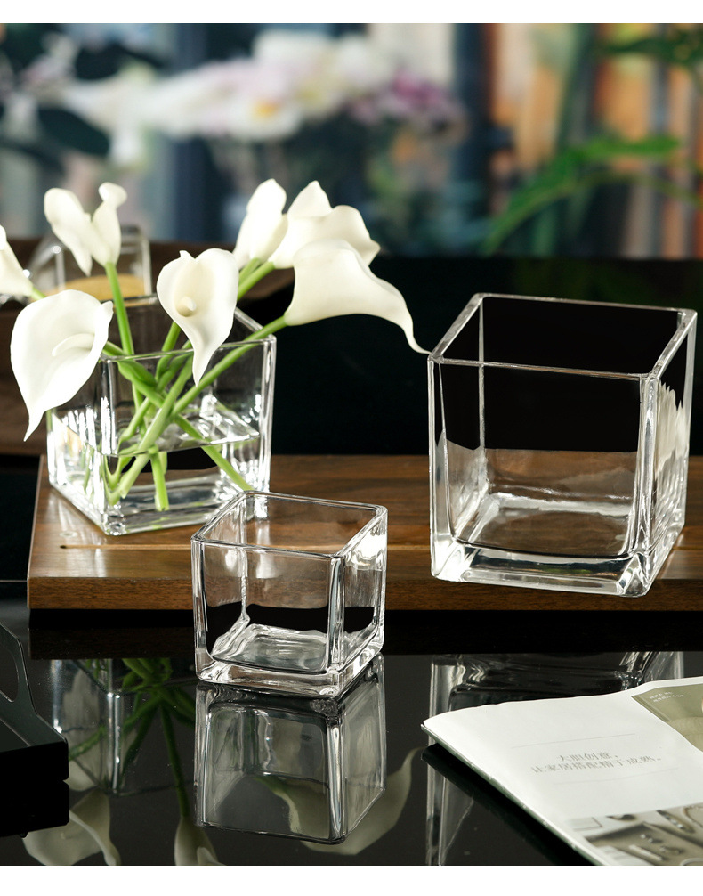 스퀘어 실린더 간단한 스퀘어 수경 녹색 심기 구리 꽃 냄비 화이트 팜 그린 로즈 물 유리 투명 꽃병 장식품스토어 가기