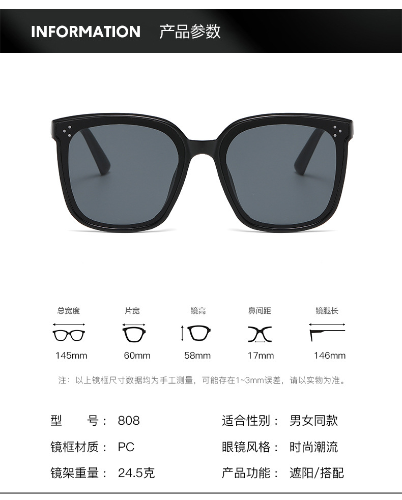 여성용 신형 선글라스, 여성용 선글라스, 패셔너블한 사각 선글라스, 한국형 다용도 사각형 인터넷 연예인 안경, 맞춤형