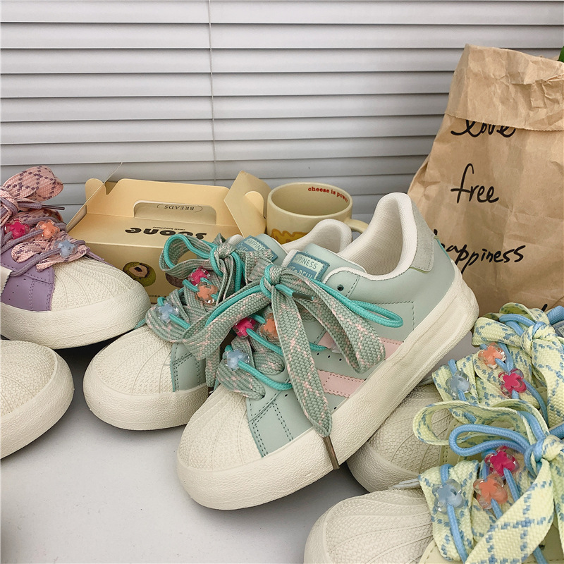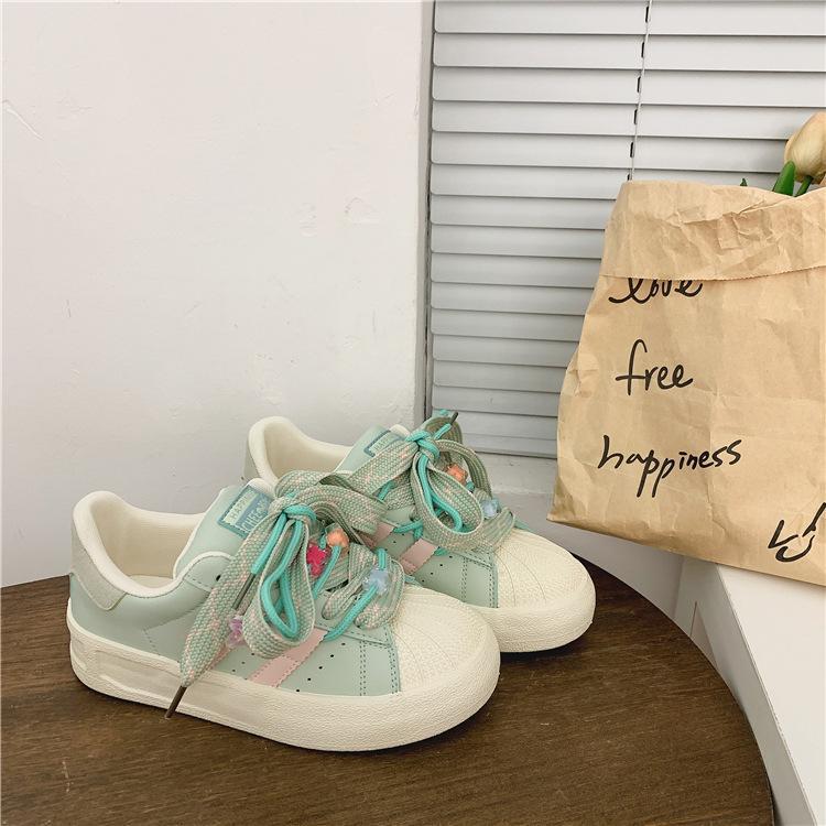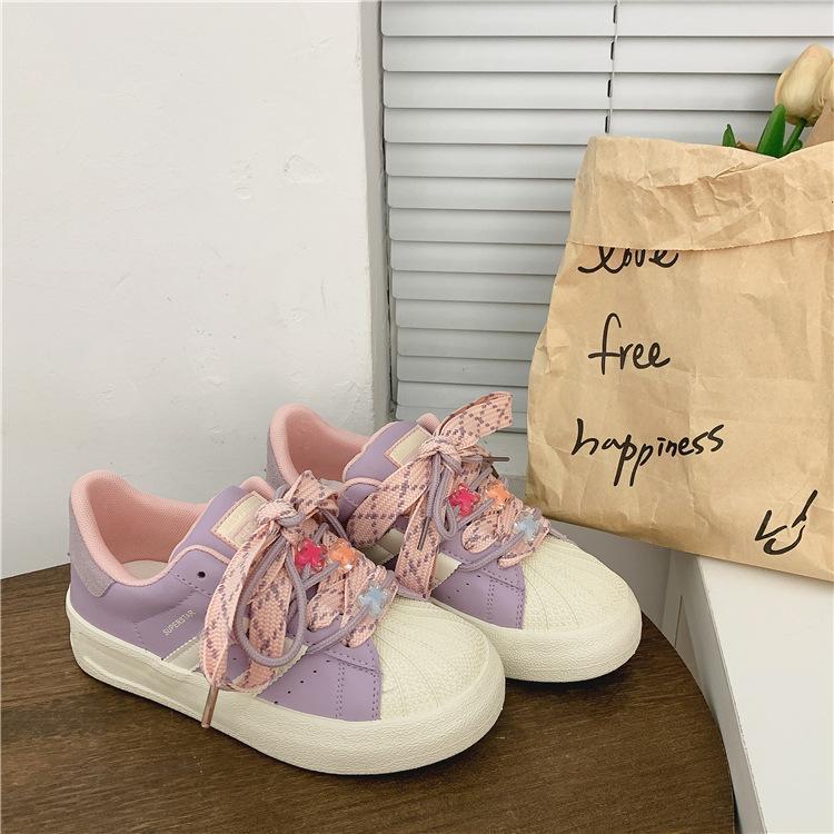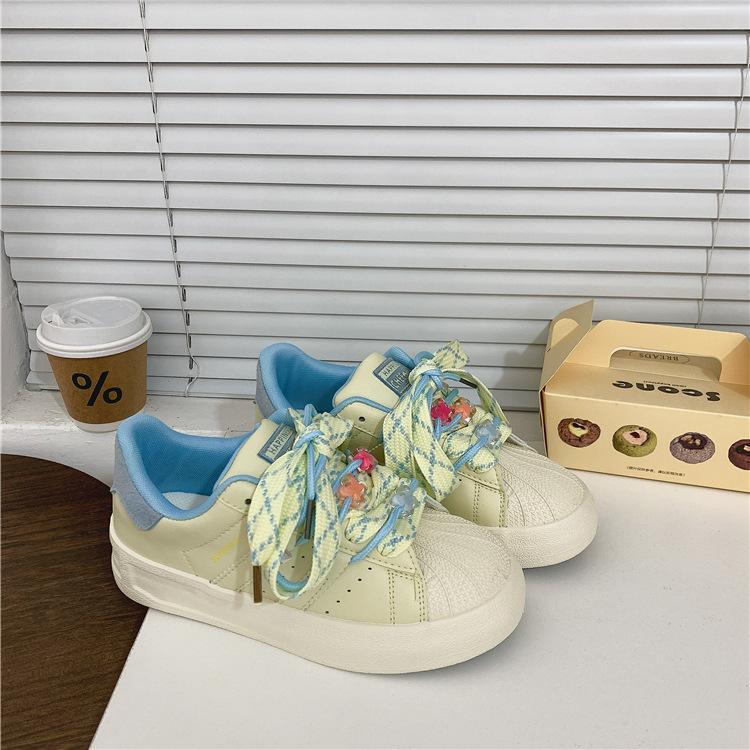 도파민 컬러 쉘 헤드 플랫폼 신발 여성 2024 봄 새 학생 화이트 신발 틈새 오리지널 세련된 신발스토어 가기