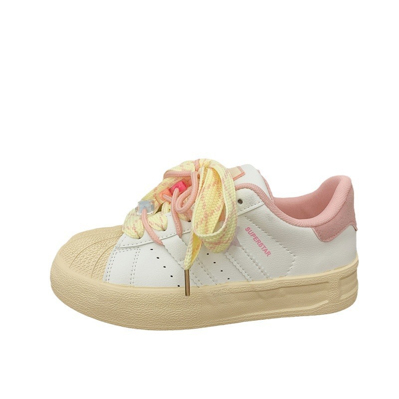 도파민 컬러 쉘 헤드 플랫폼 신발 여성 2024 봄 새 학생 화이트 신발 틈새 오리지널 세련된 신발