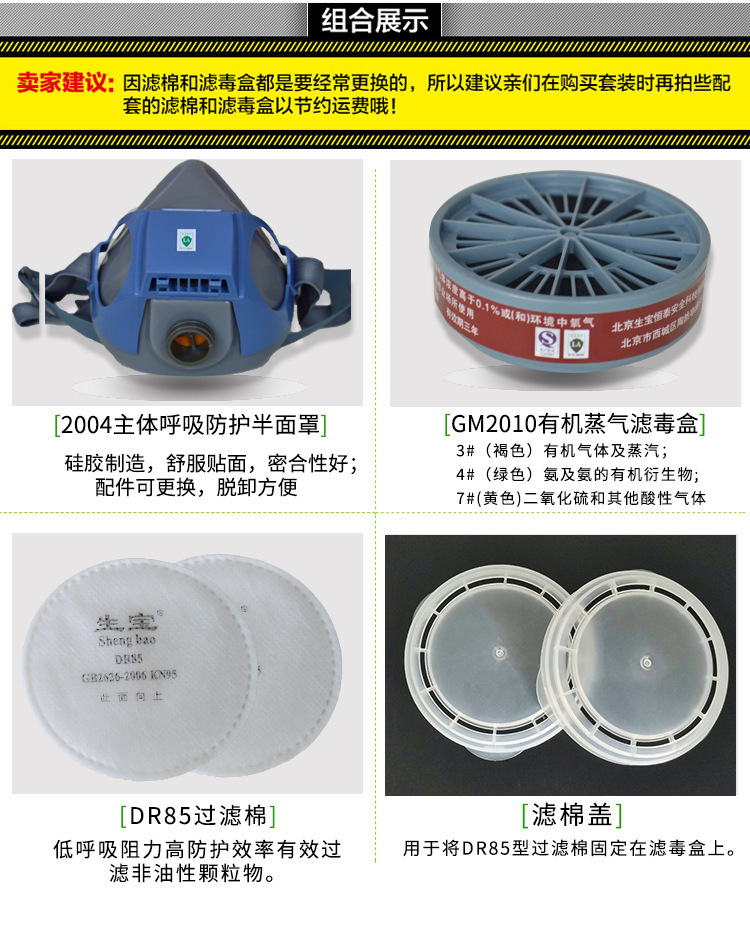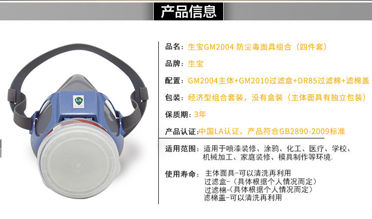 Shengbao GM2004 가스 마스크 장식 페인트 화학 유해 가스 냄새 노동 보호 방진 및 독성 하프 마스크