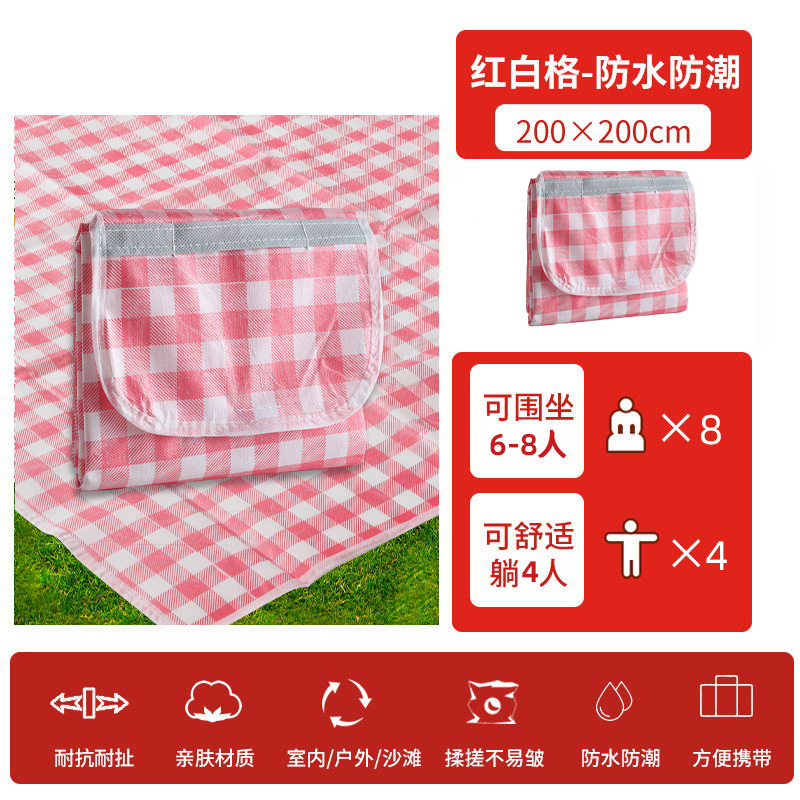 • 두꺼운 빨간색과 흰색 격자 150*200 [양면 방수] 6명이 앉습니다.