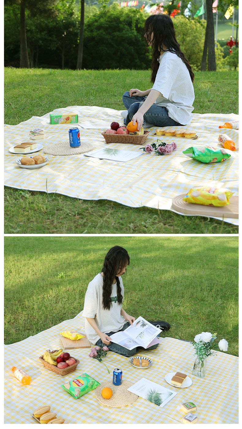 • 두꺼워진 노란색과 흰색 그리드 150*200 [양면방수] 6명이 앉는다